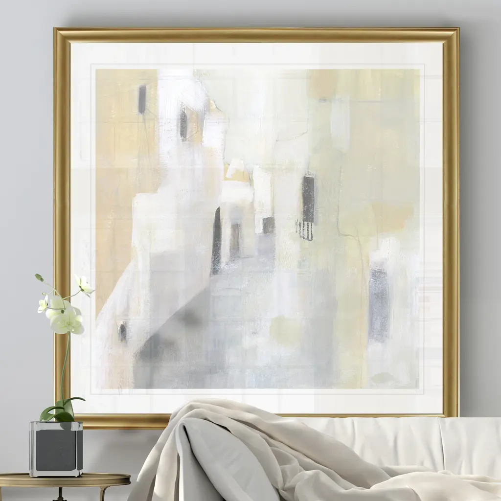 Stupell Soft City Pathway Delicate Coastal European Buildings Framed Wall Art - Yellow - 24 X 24 - Grey