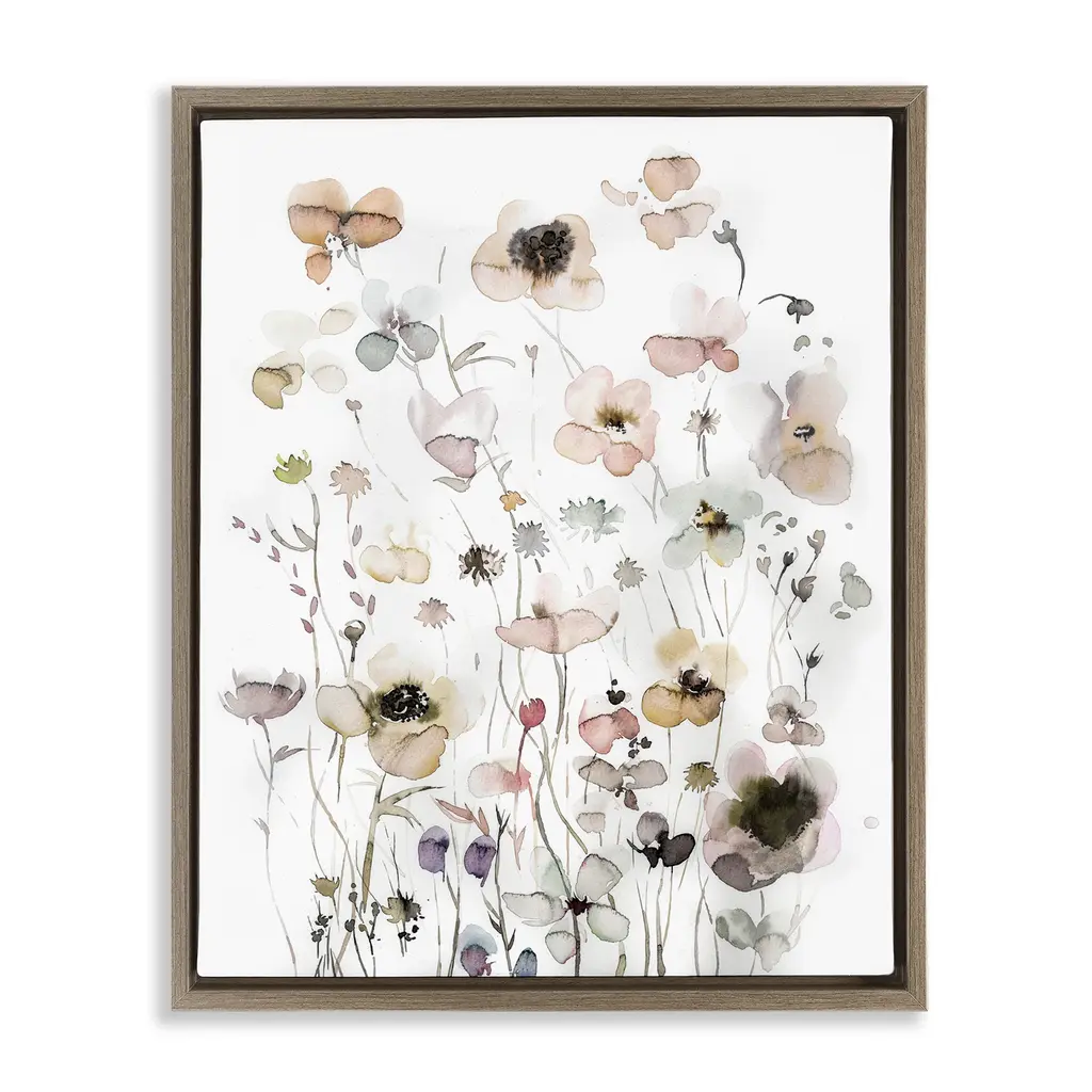 Stupell Soft Cottage Florals Framed Floater Canvas Wall Art Design By Incado - 17 X 21 - Grey