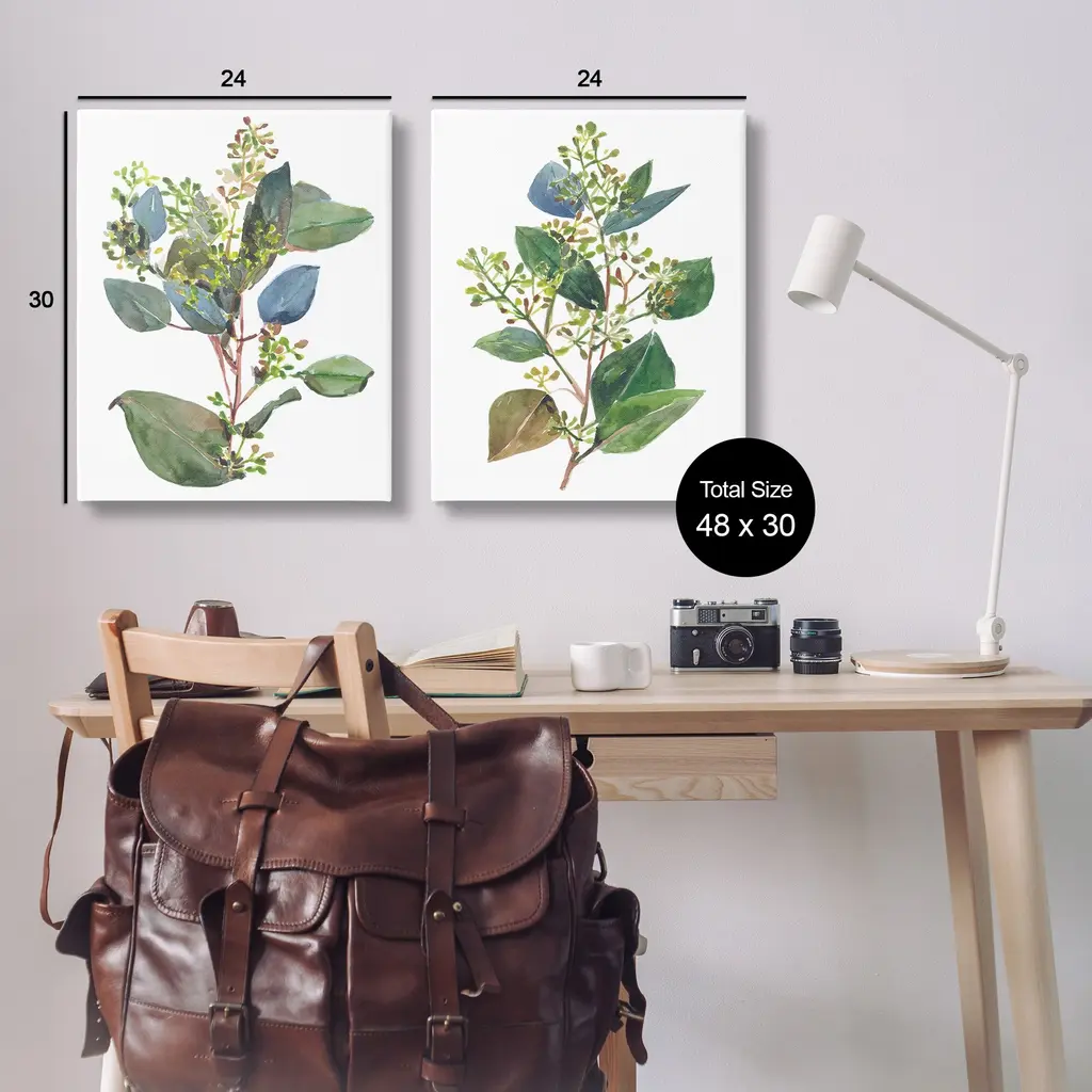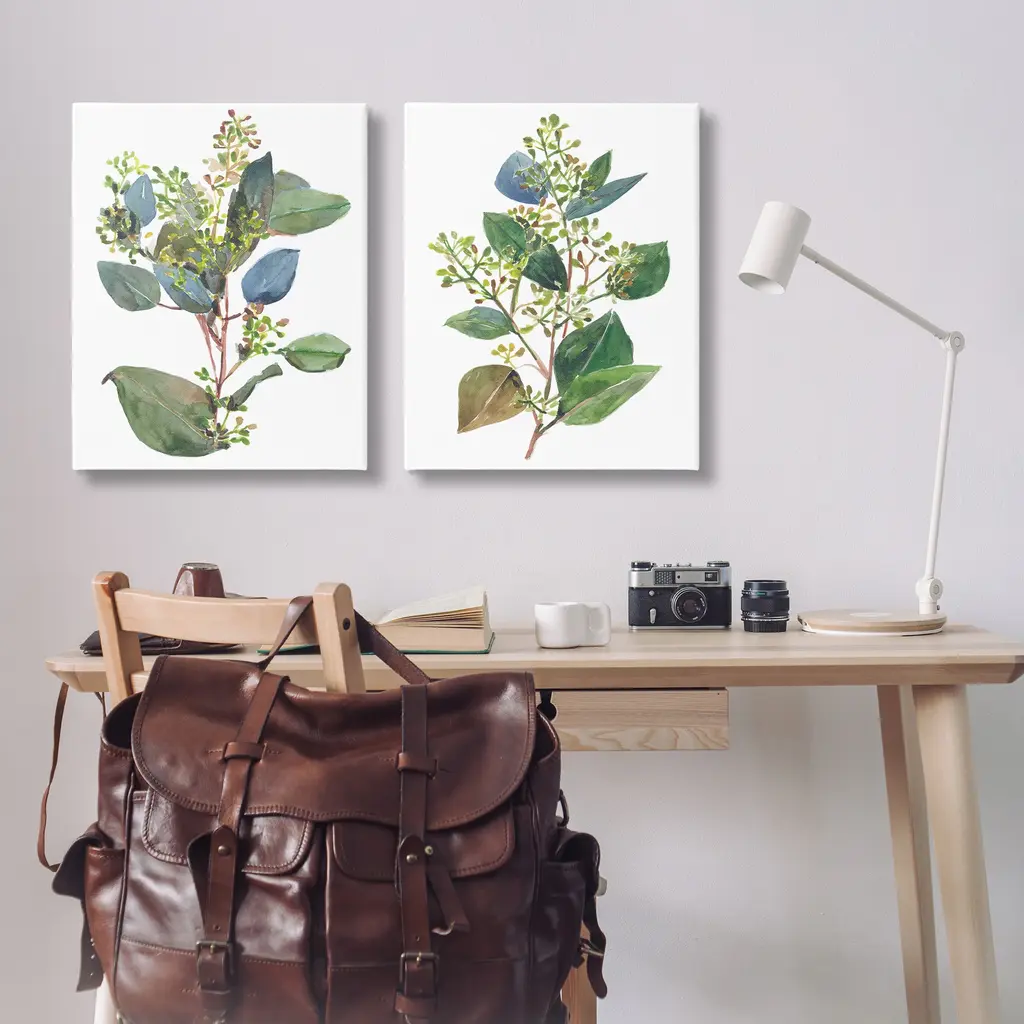 Stupell Soft Eucalyptus Plant Blue Green Ombre Leaves, 2Pc Multi Piece Canvas Wall Art Set - 24 X 30