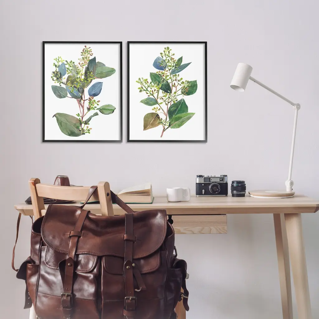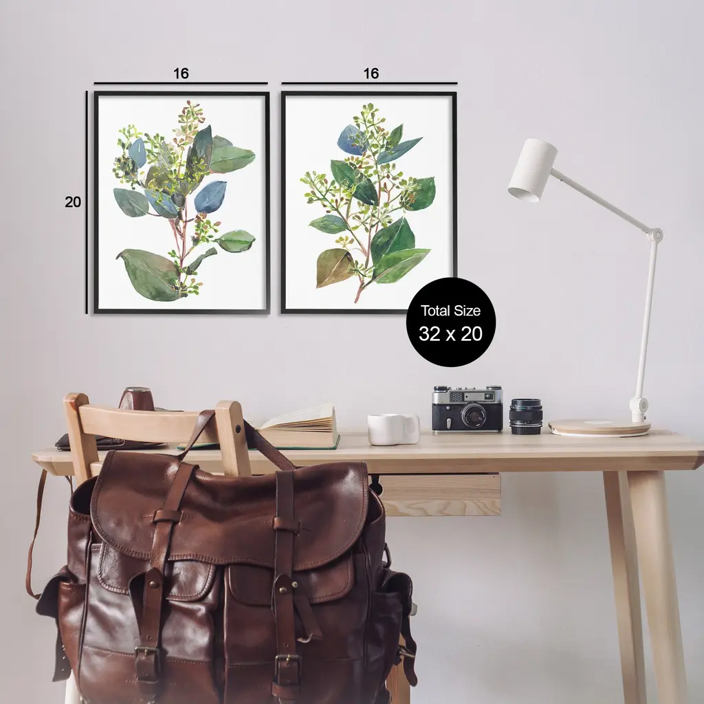 Stupell Soft Eucalyptus Plant Blue Green Ombre Leaves, 2Pc Multi Piece Framed Wall Art Set - 16 X 20 - Black