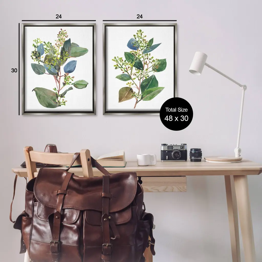 Stupell Soft Eucalyptus Plant Ombre Leaves Framed Floater Canvas Wall Art Design By Melissa Wang (Set Of 2) - 25 X 31 - Grey