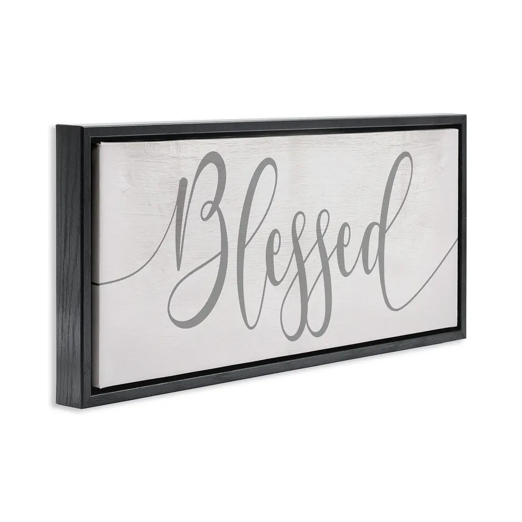 Stupell Soft Grey Blessed Typography Framed Floater Canvas Wall Art Design By Daphne Polselli - 25 X 11 - Black