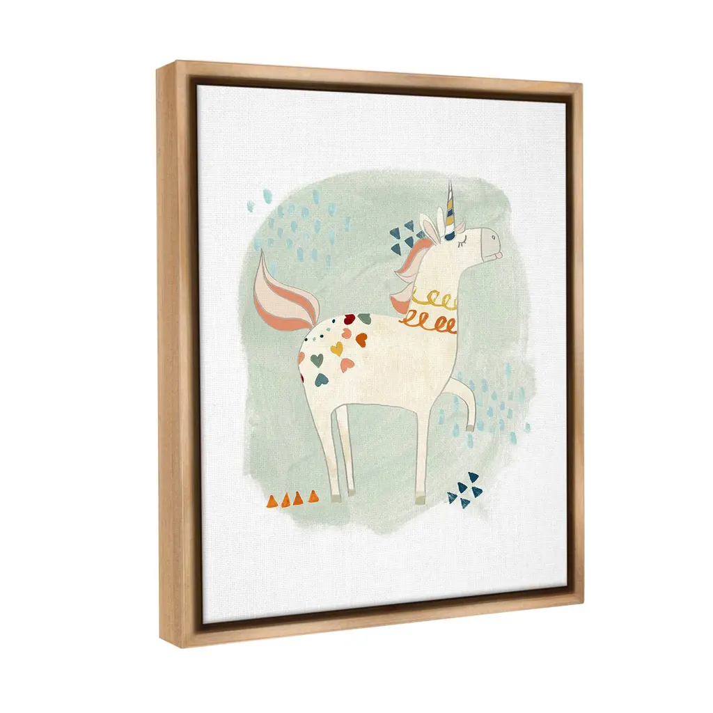 Elevate your home or office to the next level with Stupell Framed Floating Canvas Wall Art. Our premium hand-stretched canvas is mounted securely into a sturdy lightweight frame. The museum-style gap between the wrapped canvas and the box frame gives the illusion of floating artwork. Stupell Wall Art is made in the USA.Features: Dimensions: 17 x 1.7 x 21 Frame, 16 x 1.5 x 20 Canvas ArtFloating Frame Canvas Products are available in sizes 17"x21" and 25"x31". All Floating Frame Canvas Products have a 1.7" Depth.Wall Art is Ready to Hang with Hardware Free Hanging. No Installation required. For Easy Set Up Lean or Layer Artwork on Shelf or Against Wall. Artwork is Permently Fixed into the Frame.Our elevated 1.7" Thick Floating Frame is the perfect complement to our canvas style Wall Art. We use only the highest quality inks in house with industry leading printing solutions. Canvas is hand stretched over a durable wood foundation and then mounted securly into a Modern Box Frame. Made in the USA.Artwork Relates To: Animal, Fantasy, Unicorn, Kids, Heart, Shapes, Geometric, Whimsical, HorseDesign by June Erica Vess