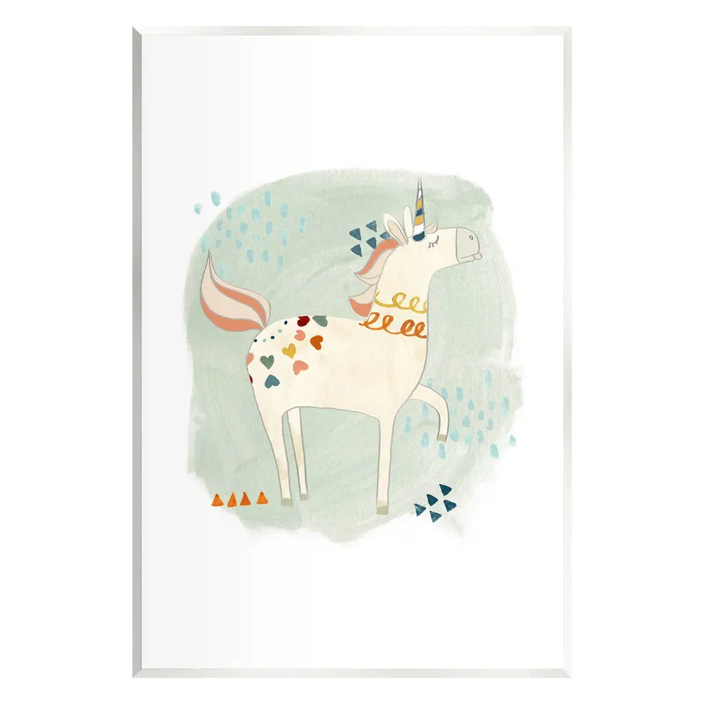Add dimension to any room with our textured Framed Giclee Artwork. Our framed artwork is securely mounted into a 1.5-inch thick wood grain frame and ready to hang. Frames are available in three alluring styles: black, gray farmhouse and white. In addition, you should check out our oversized options if you want a statement piece. Stupell Wall Art is made in the USA.Features: Dimensions: 11 x 1.5 x 14 FramedFramed Giclee Products are available in the sizes 11"x14", 16"x20" or 24"x30". All Framed Giclee Products have a 1.5" Depth. Wall Art is Ready to Hang with Hardware Free Hanging. No installation required. For Easy Set Up Lean or Layer Artwork on Shelf or Against Wall.Our giclée prints are carefully mounted on a durable MDF backing, and then perfectly finished in a 1.5 inch thick woodgrain frame. Mounted frame colors include black, gray farmhouse and white. Made In USA.Artwork Relates To: Animal, Fantasy, Unicorn, Kids, Heart, Shapes, Geometric, Whimsical, HorseDesign by June Erica Vess