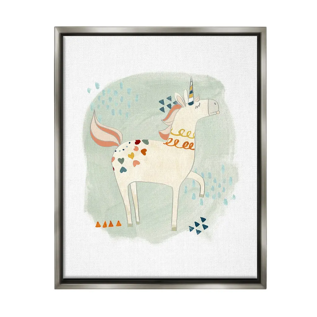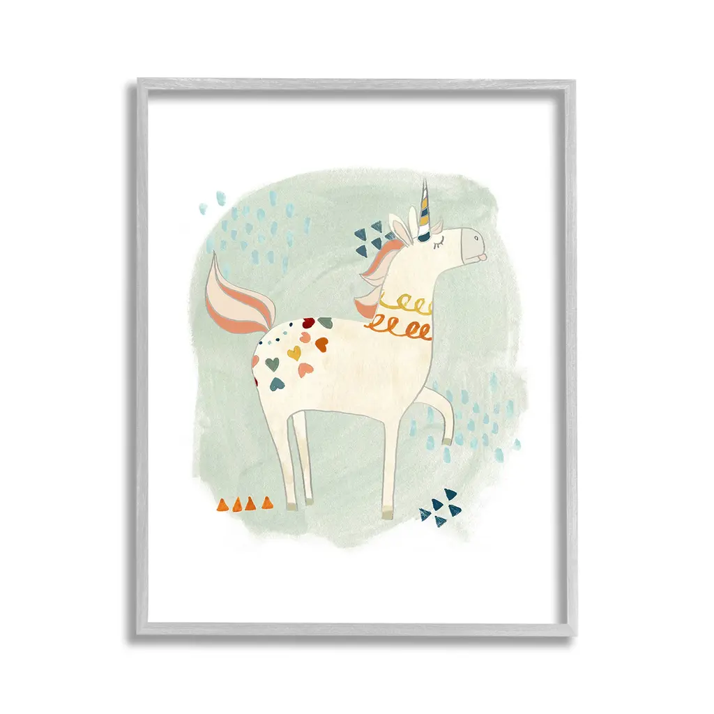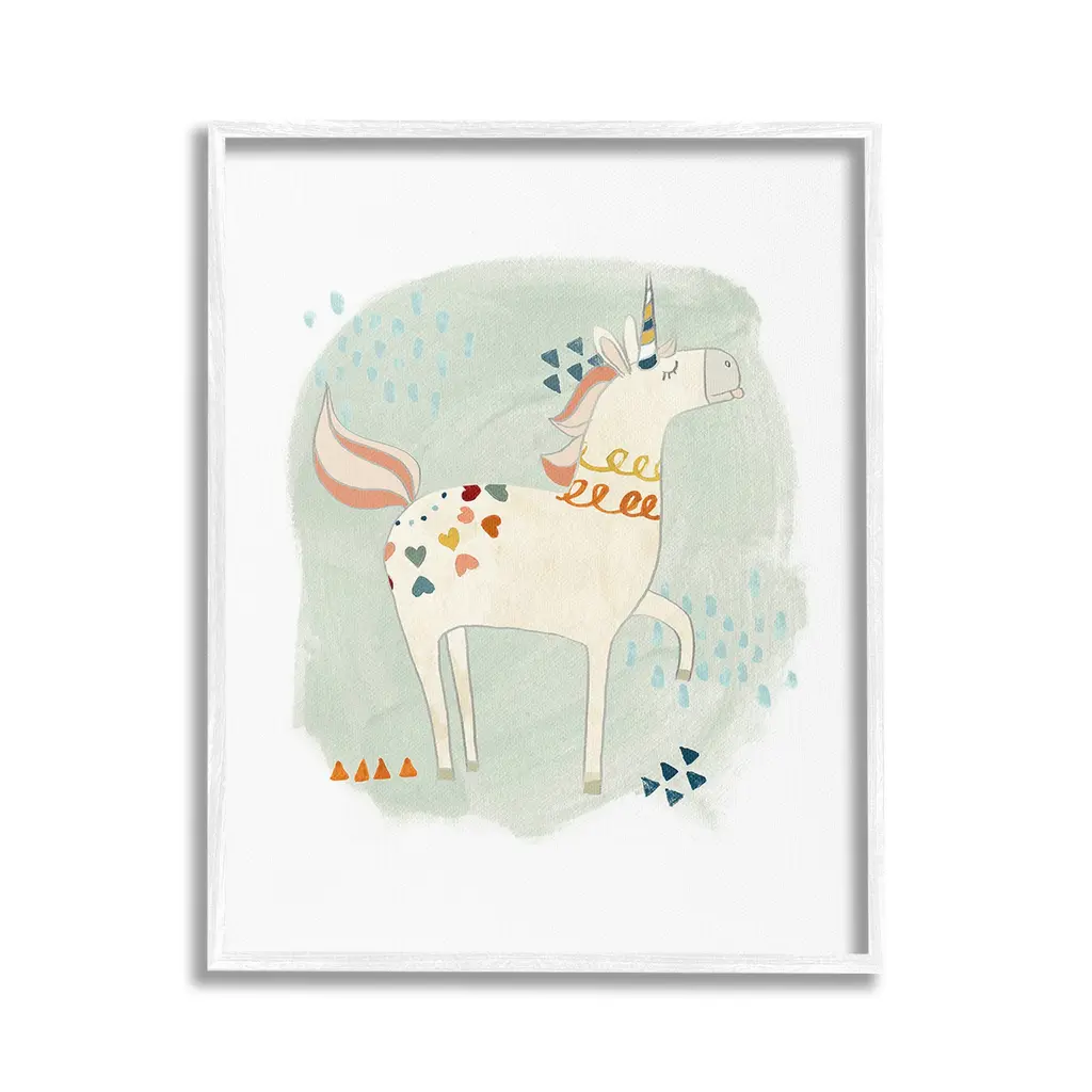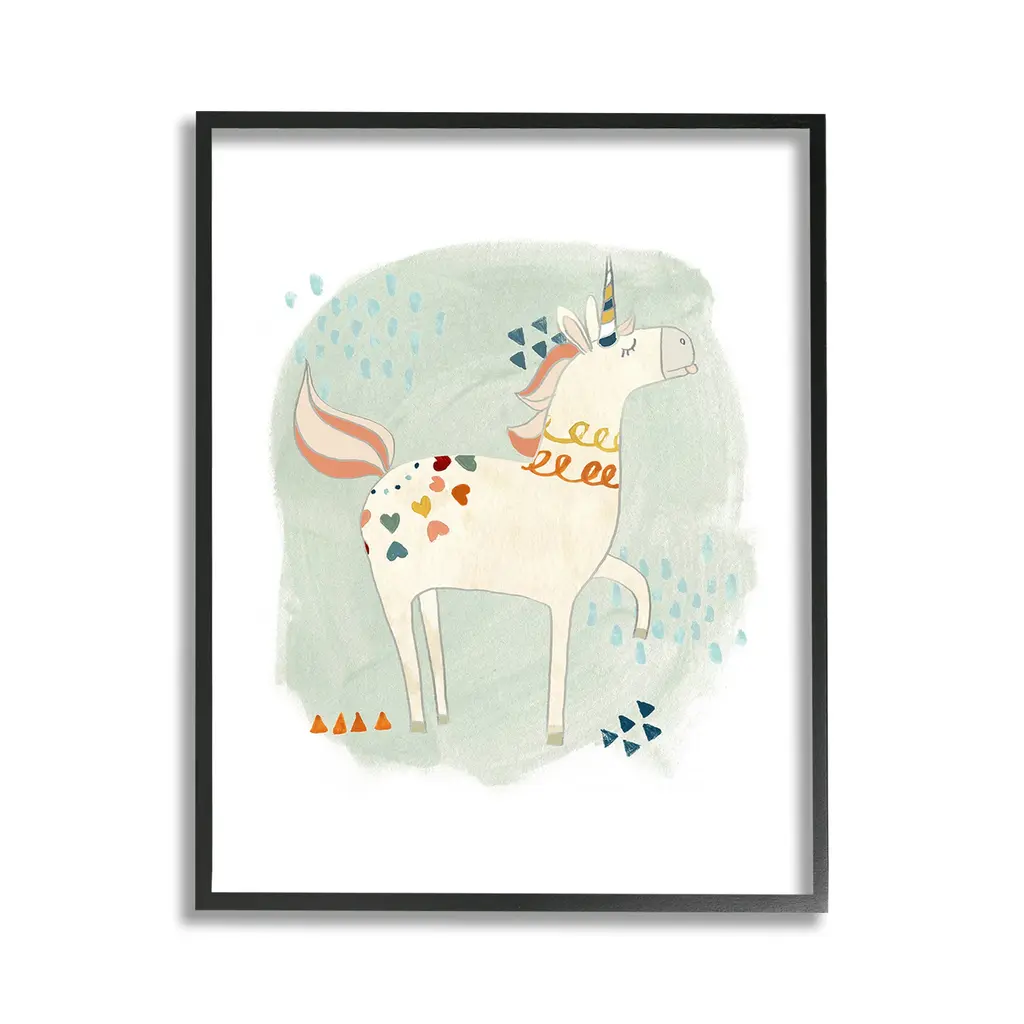 Add dimension to any room with our textured Framed Giclee Artwork. Our framed artwork is securely mounted into a 1.5-inch thick wood grain frame and ready to hang. Frames are available in three alluring styles: black, gray farmhouse and white. In addition, you should check out our oversized options if you want a statement piece. Stupell Wall Art is made in the USA.Features: Dimensions: 11 x 1.5 x 14 FramedFramed Giclee Products are available in the sizes 11"x14", 16"x20" or 24"x30". All Framed Giclee Products have a 1.5" Depth. Wall Art is Ready to Hang with Hardware Free Hanging. No installation required. For Easy Set Up Lean or Layer Artwork on Shelf or Against Wall.Our giclée prints are carefully mounted on a durable MDF backing, and then perfectly finished in a 1.5 inch thick woodgrain frame. Mounted frame colors include black, gray farmhouse and white. Made In USA.Artwork Relates To: Animal, Fantasy, Unicorn, Kids, Heart, Shapes, Geometric, Whimsical, HorseDesign by June Erica Vess