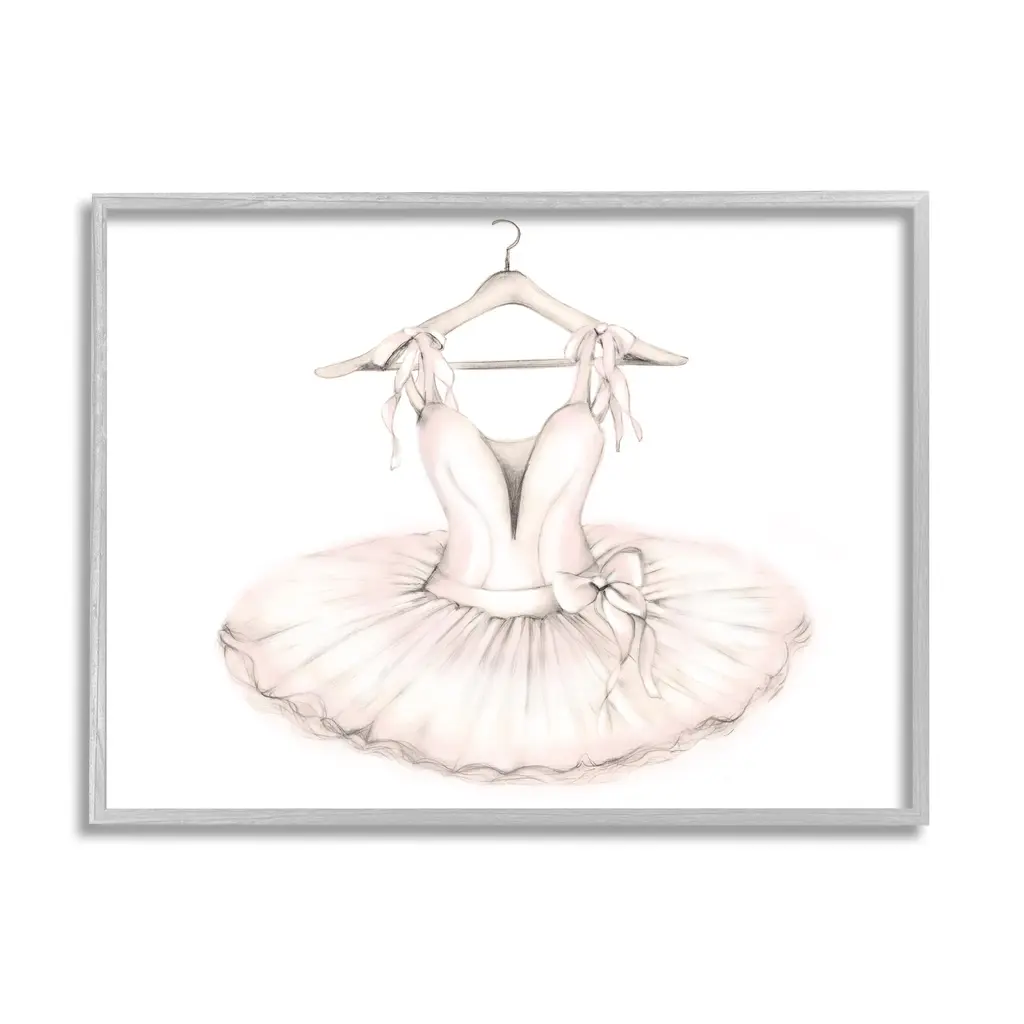Stupell Soft Pink Ballerina Slippers Ballet Dance Shoes Framed Wall Art - 11 X 14 - Grey