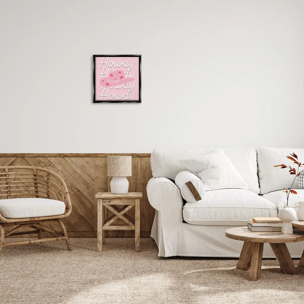Stupell Soft Pink Howdy Pattern Framed Floater Canvas Wall Art Design By Corrine Rose Design - 18 X 18 - Black