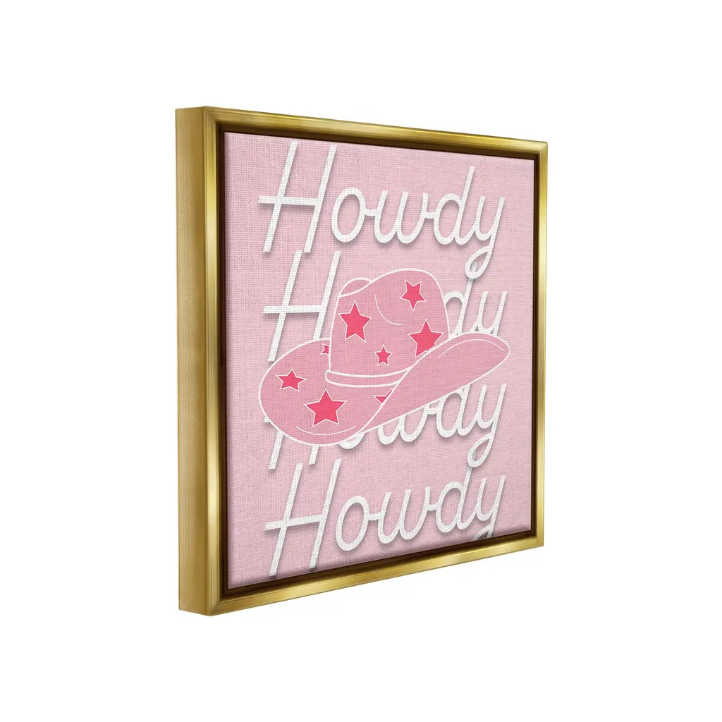 Stupell Soft Pink Howdy Pattern Framed Floater Canvas Wall Art Design By Corrine Rose Design - 18 X 18 - Gold
