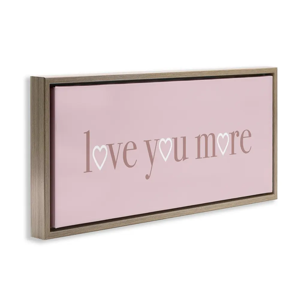 Stupell Soft Pink Love You More Phrase Framed Floater Canvas Wall Art Design By Daphne Polselli - 31 X 14 - Brown