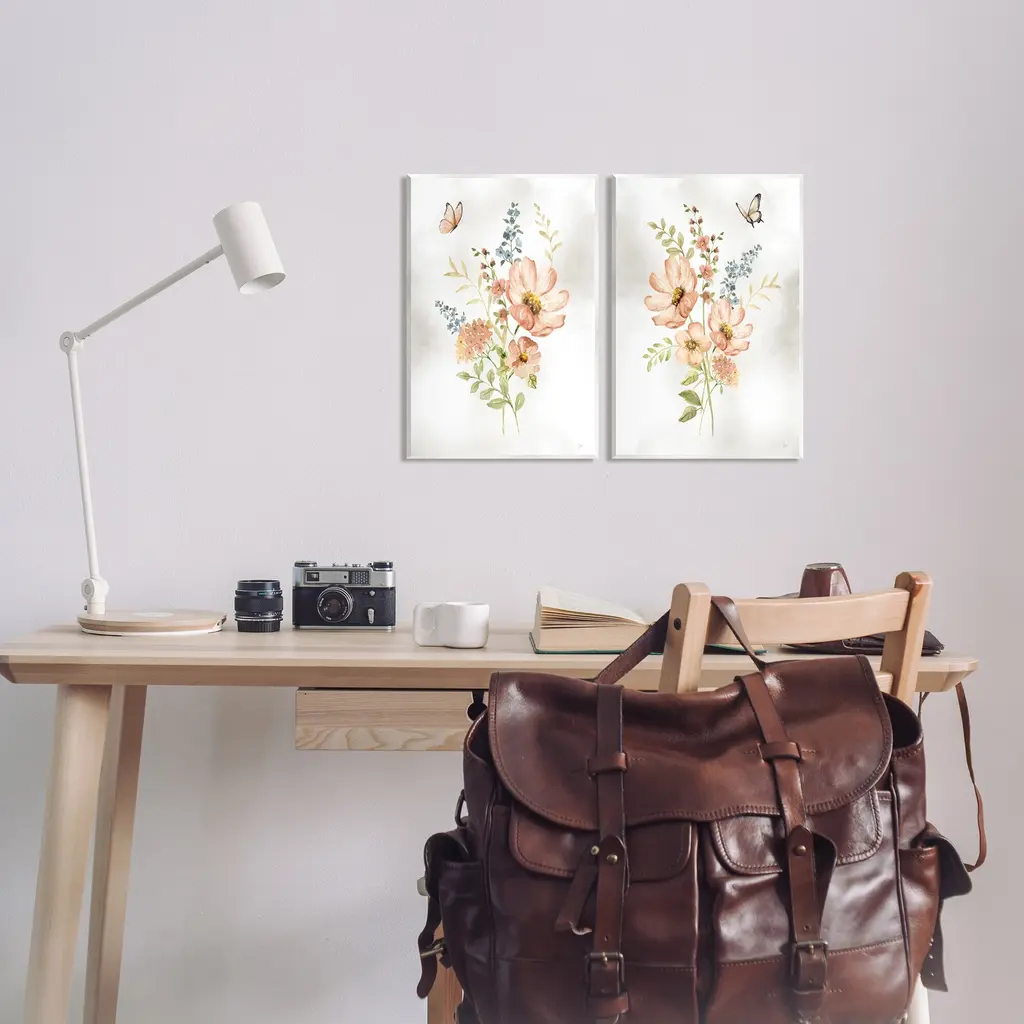 Fill any space with Stupell Wall Art Sets. Our wall plaques start as high-quality lithograph prints mounted on durable 0.5-inch thick MDF wood. Each piece is hand finished and comes with a fresh layer of white foil on the sides to give it a crisp, clean look. Plaques arrive ready to hang without installation and come with removable plastic corners to keep them from damage in transit. Wall Art is made in the USA.Features: Dimensions: 2 Piece Set, Each Panel is 10 x 0.5 x 15 InchesWall Plaque Set Sizes Include Standard: 2pc, Each is 10 x 0.5 x 15 Oversized: 2pc, Each is 13 x 0.5 x 19Wall Art is Ready to Hang with Hardware Free Hanging. No installation required. For Easy Set Up Lean or Layer Artwork on Shelf or Against Wall.All of our wall plaques start off as high quality lithograph prints that are then mounted on durable 0.5 inch thick MDF wood. Each piece is hand finished and comes with a fresh layer of foil on the sides to give it a crisp clean look. Made In USA.Artwork Relates To: Floral, Plant, Flower, Animal, Insect, Butterfly, WildflowerDesign by Nan