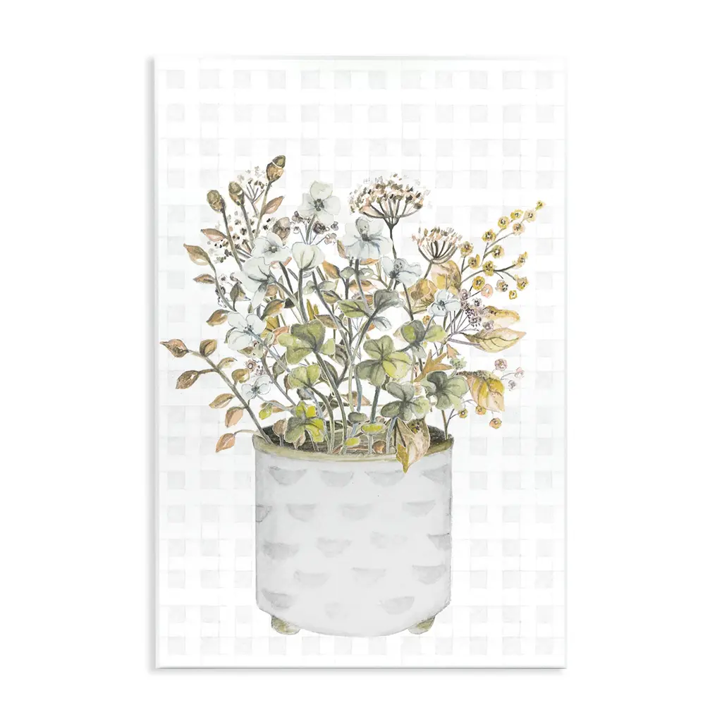 Our wall plaques start as high-quality lithograph prints mounted on durable 0.5-inch thick MDF wood. Each piece is hand finished and comes with a fresh layer of white foil on the sides to give it a crisp, clean look. Plaques arrive ready to hang without installation and come with removable plastic corners to keep them from damage in transit. Stupell Wall Art is made in the USA.Features: Dimensions: 10 x 0.5 x 15 InchesWall Plaque Product Sizes Include 10"x15" and 13"x19". All wall plaque products have a 0.5" Depth. Wall Art is Ready to Hang with Hardware Free Hanging. No installation required. For Easy Set Up Lean or Layer Artwork on Shelf or Against Wall.All of our wall plaques start off as high quality lithograph prints that are then mounted on durable 0.5 inch thick MDF wood. Each piece is hand finished and comes with a fresh layer of foil on the sides to give it a crisp clean look. Made In USA.Artwork Relates To: Plant, Leaf, Herbs, Botanical, Nature, Flower, Floral, Potted PlantDesign by Janice Gaynor