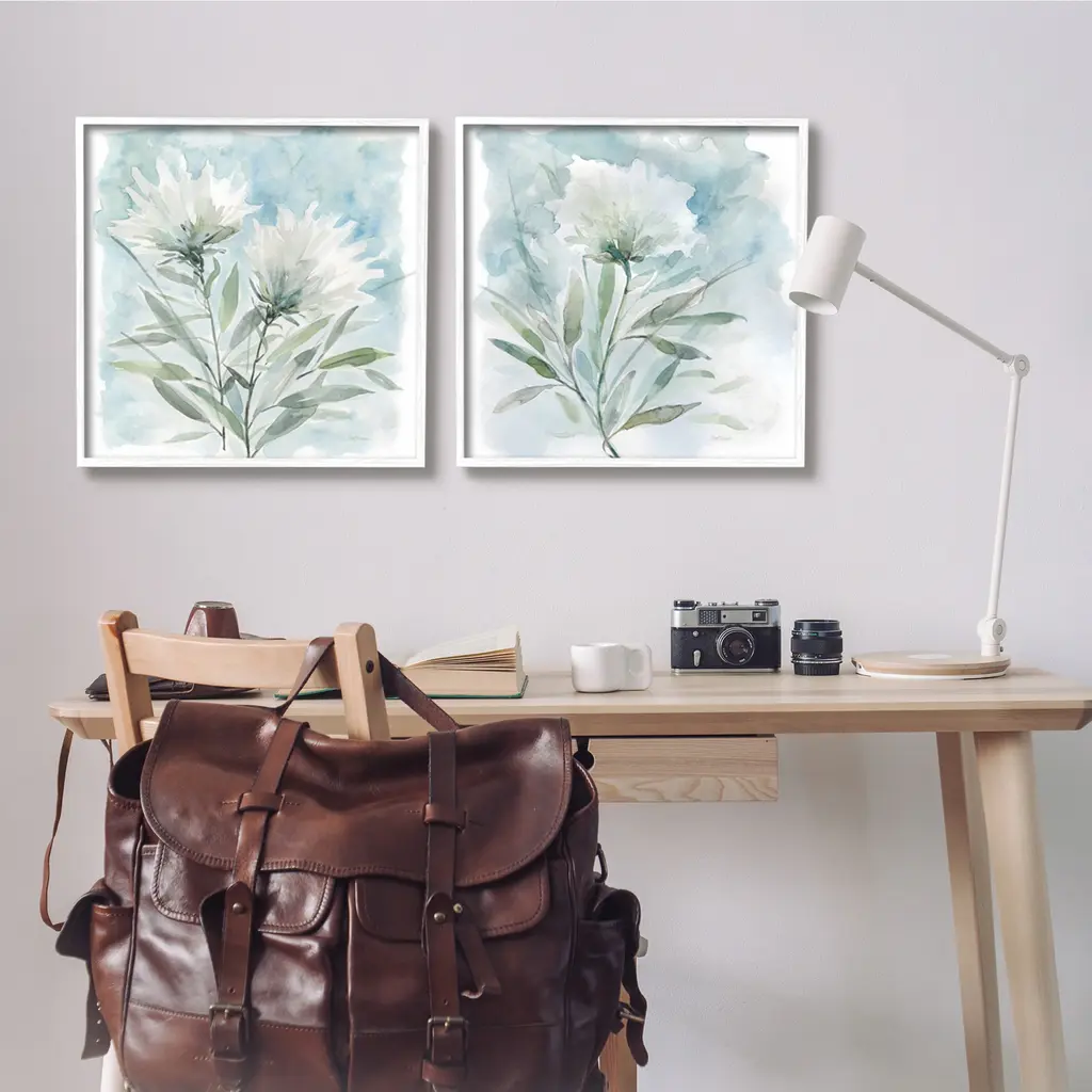 Stupell Soft Spring Flower Still Life White Watercolor Florals 2Pc Multi Piece Framed Wall Art Set - 24 X 24 - Black