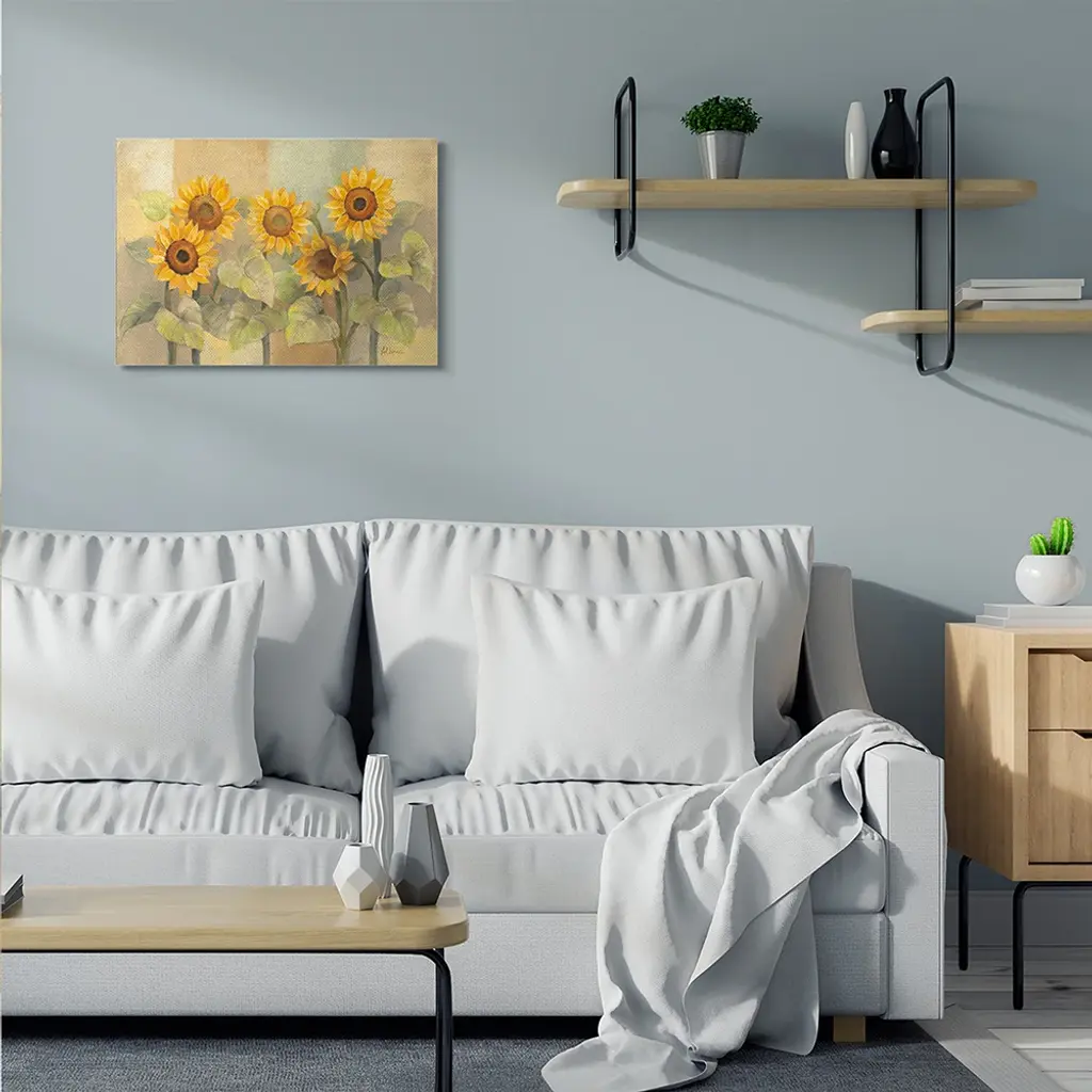 Stupell Soft Vintage Sunflower Floral Field Yellow Green Canvas Wall Art - 24 X 30