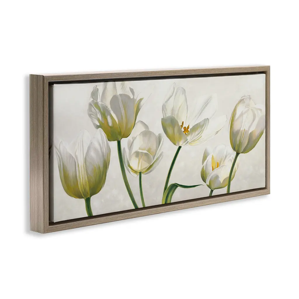 Elevate your home or office to the next level with Stupell Framed Floating Canvas Wall Art. Our premium hand-stretched canvas is mounted securely into a sturdy lightweight frame. The museum-style gap between the wrapped canvas and the box frame gives the illusion of floating artwork. Stupell Wall Art is made in the USA.Features: Dimensions: 25 x 1.7 x 11 Frame, 24 x 1.5 x 10 Canvas ArtFloating Frame Canvas Products are available in sizes 25"x11" and 31"x14". All Floating Frame Canvas Products have a 1.7" Depth.Wall Art is Ready to Hang with Hardware Free Hanging. No Installation required. For Easy Set Up Lean or Layer Artwork on Shelf or Against Wall. Artwork is Permently Fixed into the Frame.Our elevated 1.7" Thick Floating Frame is the perfect complement to our canvas style Wall Art. We use only the highest quality inks in house with industry leading printing solutions. Canvas is hand stretched over a durable wood foundation and then mounted securly into a Modern Box Frame. Made in the USA.Artwork Relates To: Flower, Floral, Tulip, Blossom, Rustic, VintageDesign by Eva Barberini