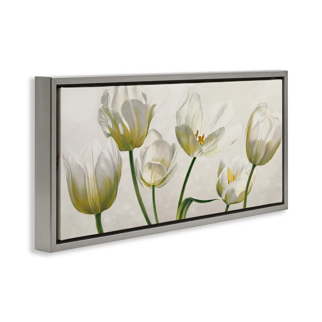 Elevate your home or office to the next level with Stupell Framed Floating Canvas Wall Art. Our premium hand-stretched canvas is mounted securely into a sturdy lightweight frame. The museum-style gap between the wrapped canvas and the box frame gives the illusion of floating artwork. Stupell Wall Art is made in the USA.Features: Dimensions: 25 x 1.7 x 11 Frame, 24 x 1.5 x 10 Canvas ArtFloating Frame Canvas Products are available in sizes 25"x11" and 31"x14". All Floating Frame Canvas Products have a 1.7" Depth.Wall Art is Ready to Hang with Hardware Free Hanging. No Installation required. For Easy Set Up Lean or Layer Artwork on Shelf or Against Wall. Artwork is Permently Fixed into the Frame.Our elevated 1.7" Thick Floating Frame is the perfect complement to our canvas style Wall Art. We use only the highest quality inks in house with industry leading printing solutions. Canvas is hand stretched over a durable wood foundation and then mounted securly into a Modern Box Frame. Made in the USA.Artwork Relates To: Flower, Floral, Tulip, Blossom, Rustic, VintageDesign by Eva Barberini