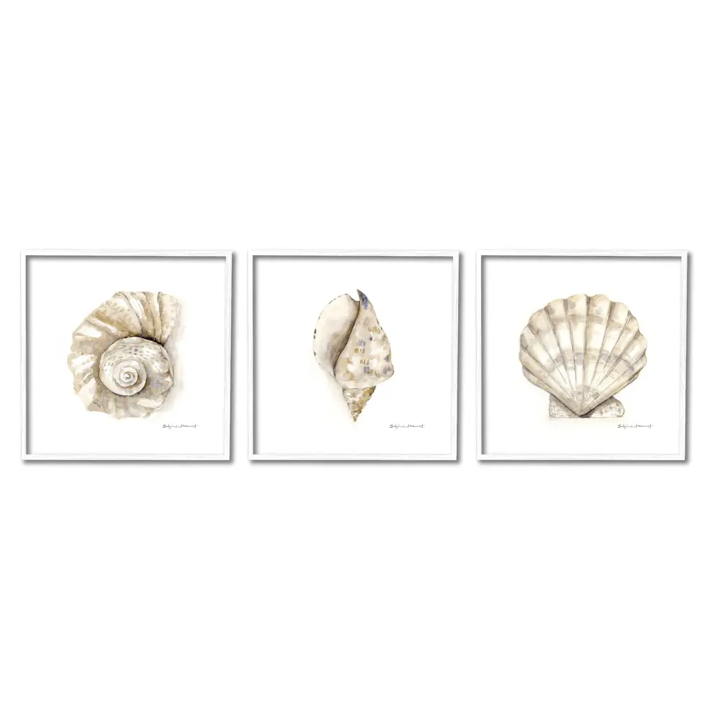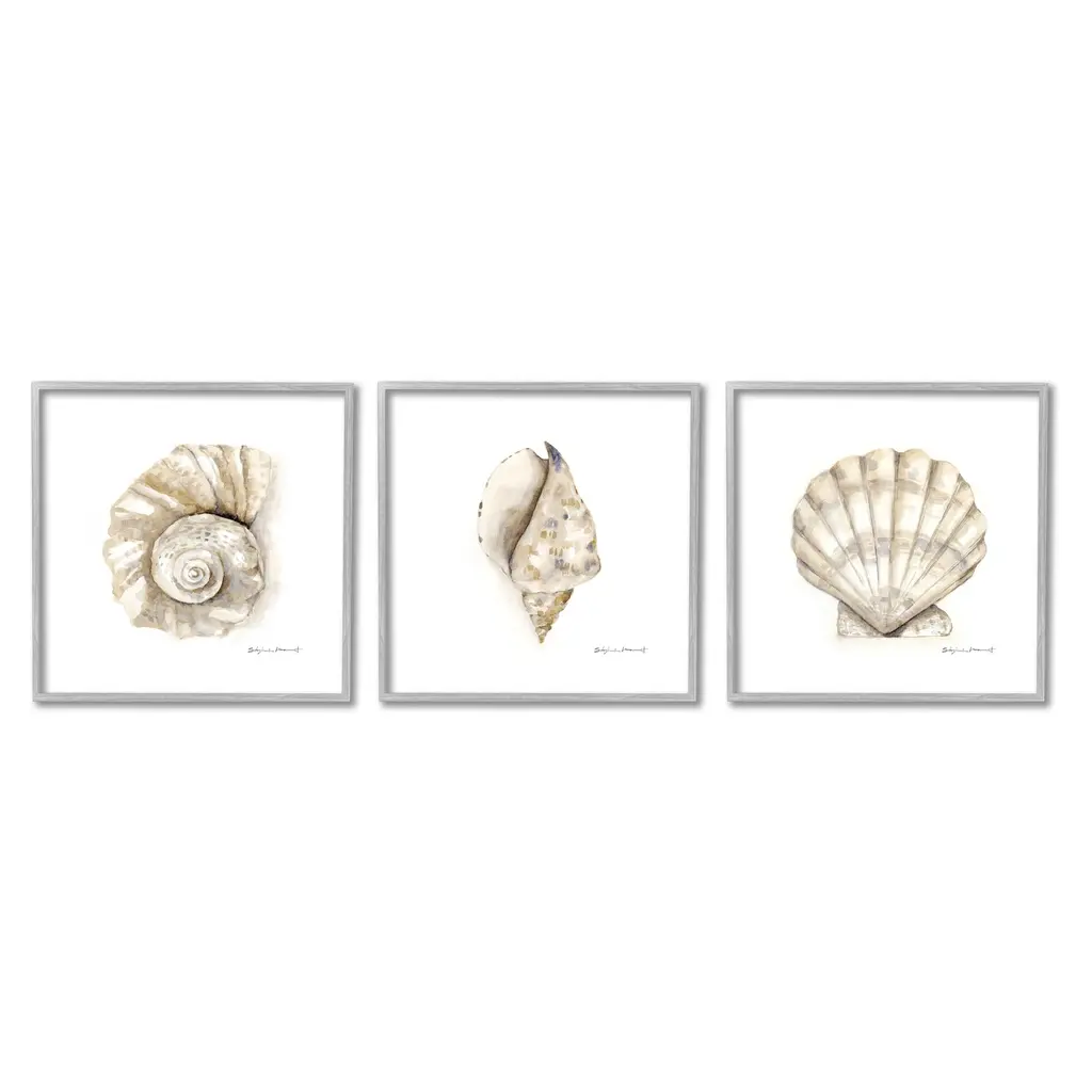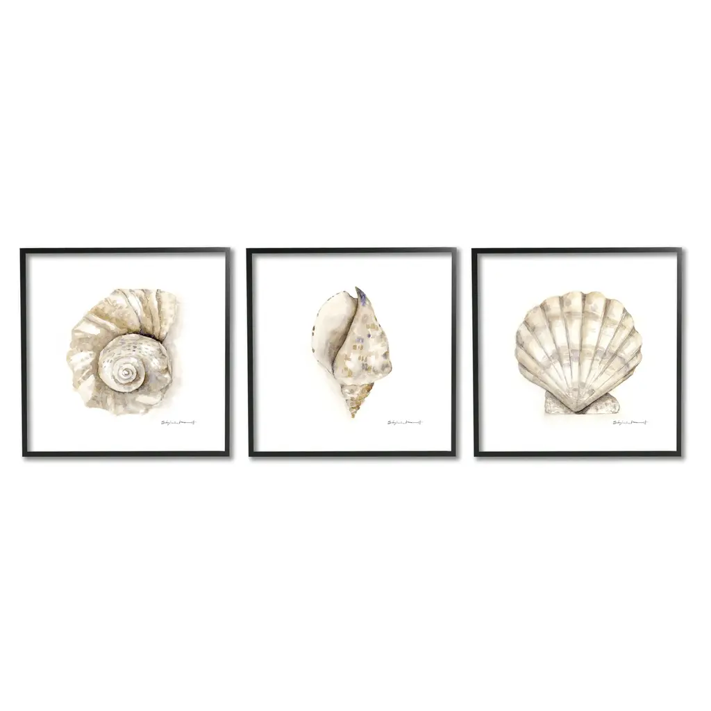 Stupell Soft White Patterned Seashells Nautical Natural Neutrals 3Pc Multi Piece Framed Wall Art Set - 12 X 12 - Black