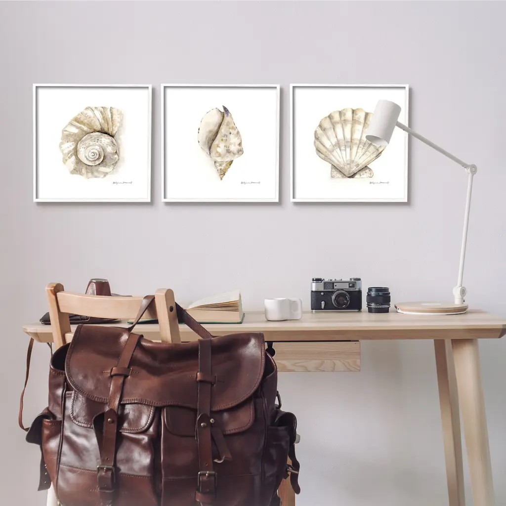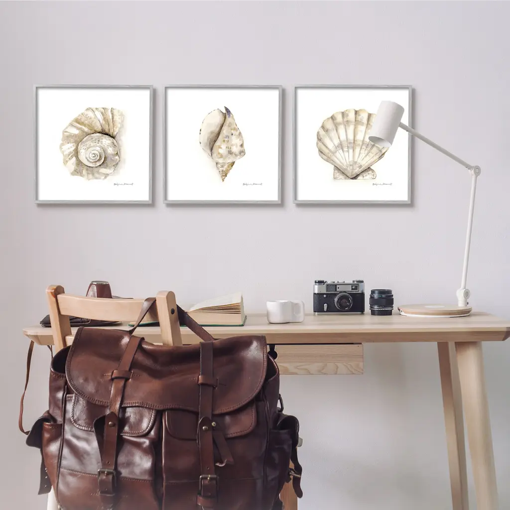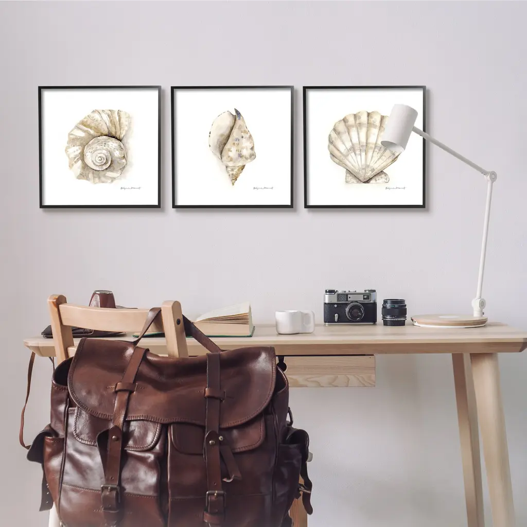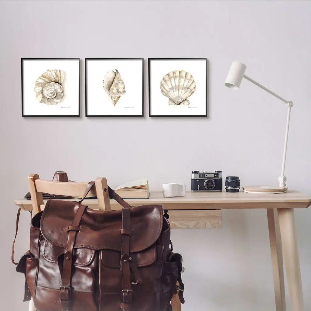 Stupell Soft White Patterned Seashells Nautical Natural Neutrals 3Pc Multi Piece Framed Wall Art Set - 12 X 12 - Black