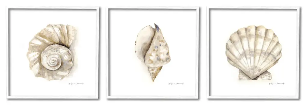 Stupell Soft White Patterned Seashells Nautical Natural Neutrals 3Pc Multi Piece Framed Wall Art Set - 17 X 17 - Grey
