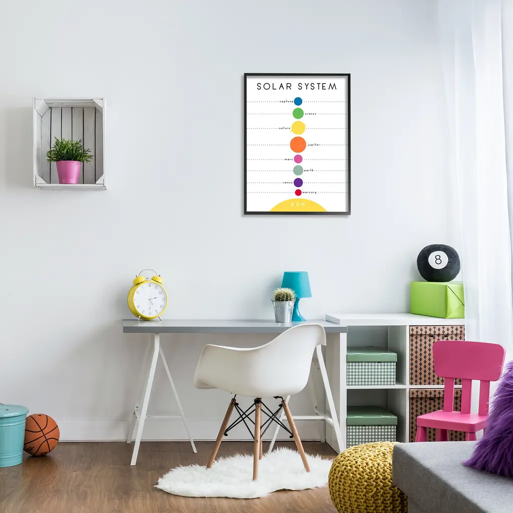Stupell Solar System Circular Planet Shape Minimal Modern Graph Framed Wall Art - 24 X 30 - Black