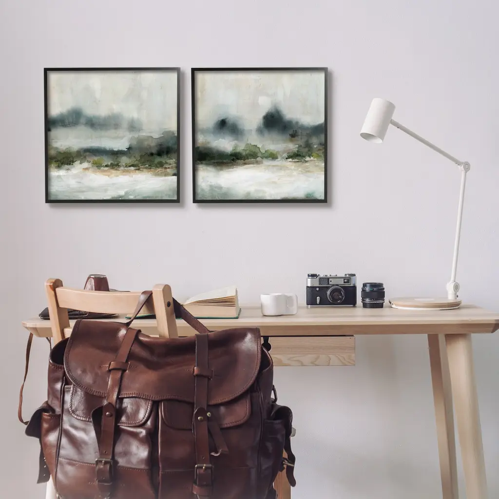 Stupell Somber Abstract Landscape Mountain Watercolor Details 2 Piece Framed Wall Art, Design By Carol Robinson - 17 X 17 - Black