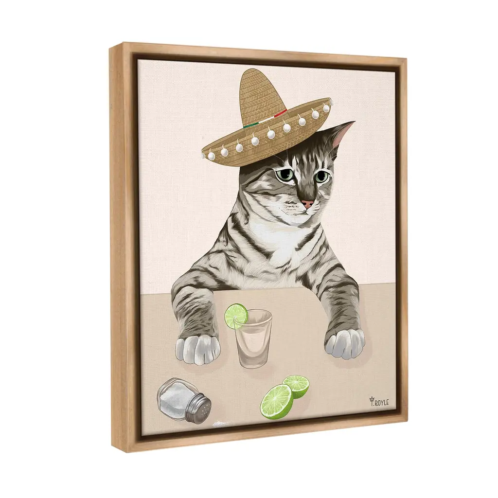 Elevate your home or office to the next level with Stupell Framed Floating Canvas Wall Art. Our premium hand-stretched canvas is mounted securely into a sturdy lightweight frame. The museum-style gap between the wrapped canvas and the box frame gives the illusion of floating artwork. Stupell Wall Art is made in the USA.Features: Dimensions: 17 x 1.7 x 21 Frame, 16 x 1.5 x 20 Canvas ArtFloating Frame Canvas Products are available in sizes 17"x21" and 25"x31". All Floating Frame Canvas Products have a 1.7" Depth.Wall Art is Ready to Hang with Hardware Free Hanging. No Installation required. For Easy Set Up Lean or Layer Artwork on Shelf or Against Wall. Artwork is Permently Fixed into the Frame.Our elevated 1.7" Thick Floating Frame is the perfect complement to our canvas style Wall Art. We use only the highest quality inks in house with industry leading printing solutions. Canvas is hand stretched over a durable wood foundation and then mounted securly into a Modern Box Frame. Made in the USA.Artwork Relates To: Animal, Pet, Cat, Drink, Cocktail, Lime, Citrus, Sombrero, Funny, HumorDesign by Tara Royle
