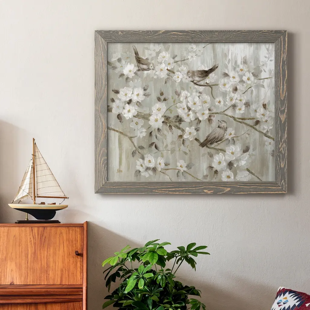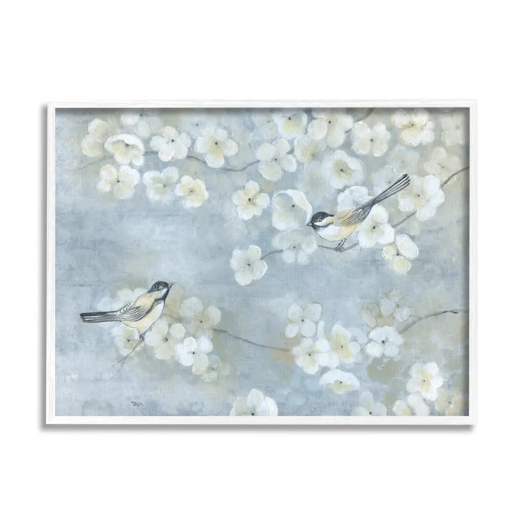 Stupell Song Sparrow Birds Tree Branches Soft Floral Blossoms Framed Wall Art - 14 X 11 - Grey