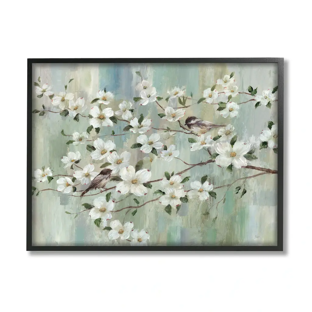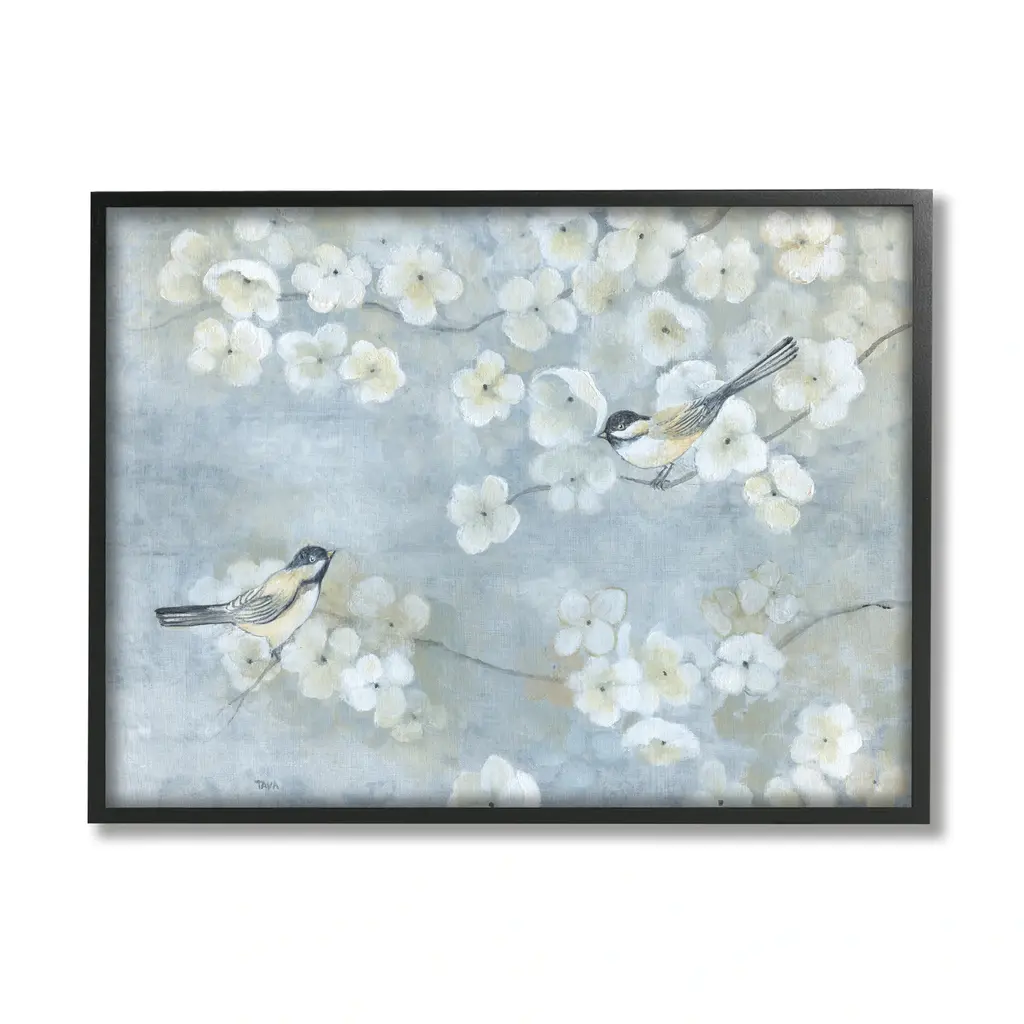 Stupell Song Sparrow Birds Tree Branches Soft Floral Blossoms Framed Wall Art - 20 X 16 - White