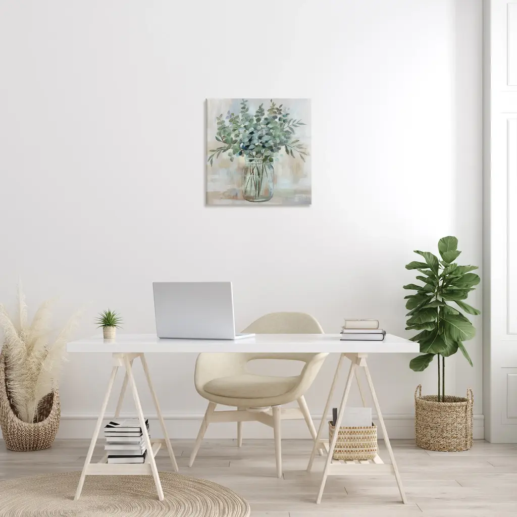 Proudly made in the USA, Our stretched canvas is created with the highest standards. We use only the highest quality inks and canvas on our in house Mimaki printers, and then hand cut and stretch each piece over a 1.5 inch thick wooden frame for hanging. The art comes ready to hang with no installation required. Not to mention, at this size, it is sure to be the focal point of any room!Features: Wall Art is Ready to Hang - No Installation or Hardware Needed. For Easy Set Up Lean or Layer Artwork on Shelf or Against Wall.Our stretched canvas is created with the highest standards. We use only the highest quality inks and canvas on our in house Mimaki printers, and then hand cut and stretch each piece over a 1.5 inch thick wooden frame for hanging. Made In USA.Artwork Relates To: Painting; Plant; Floral Design; Vase; Jar, HerbDesign by Nan