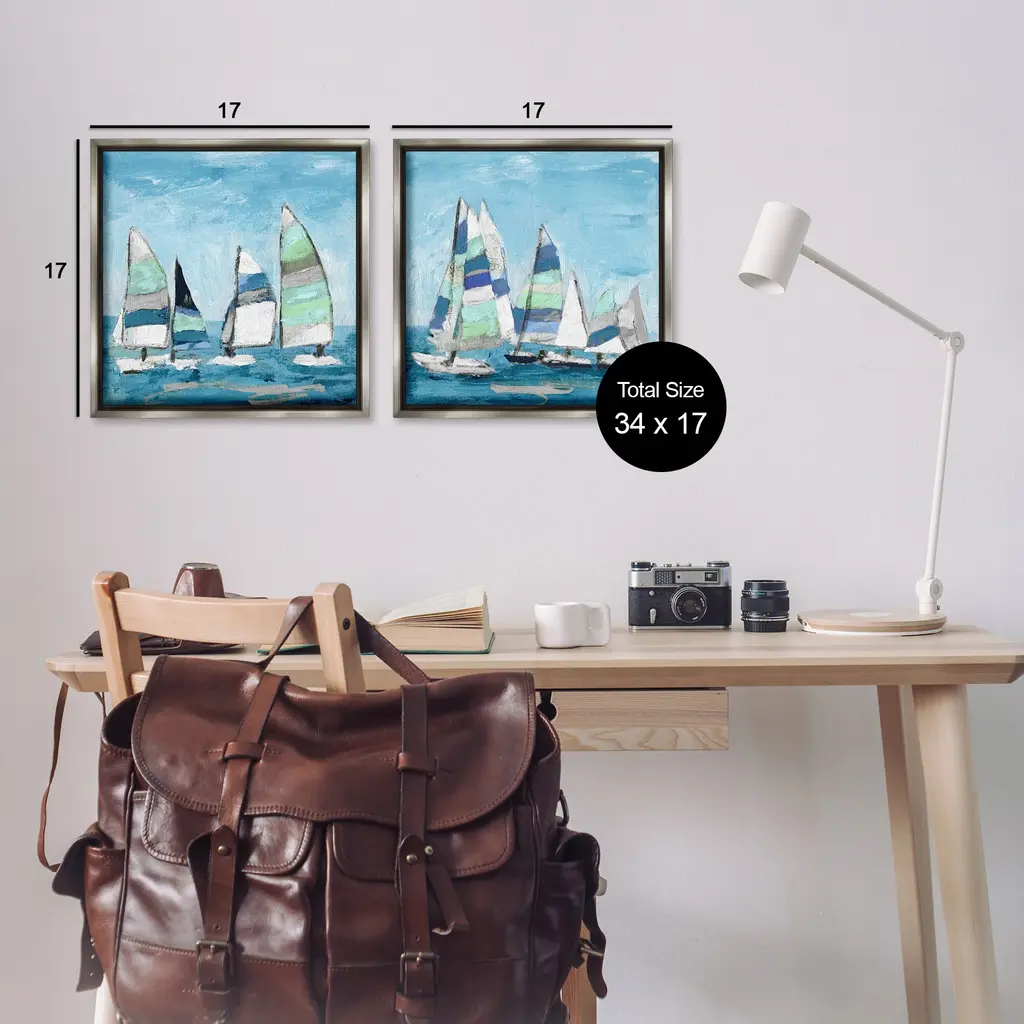 Elevate your home or office to the next level with Stupell Framed Floating Canvas Wall Art. Our premium hand-stretched canvas is mounted securely into a sturdy lightweight frame. The museum-style gap between the wrapped canvas and the box frame gives the illusion of floating artwork. Stupell Wall Art is made in the USA.Features: Dimensions: 2 Piece Set, Each Frame is 18 x 1.7 x 18Two Piece Floating Frame Canvas Products are available as 18"x18" or 25"x25" Panels. All Floating Frame Canvas Products have a 1.7" Depth.Wall Art is Ready to Hang with Hardware Free Hanging. No Installation required. For Easy Set Up Lean or Layer Artwork on Shelf or Against Wall. Artwork is Permently Fixed into the Frame.Our elevated 1.7" Thick Floating Frame is the perfect complement to our canvas style Wall Art. We use only the highest quality inks in house with industry leading printing solutions. Canvas is hand stretched over a durable wood foundation and then mounted securly into a Modern Box Frame. Made in the USA.Artwork Relates To: Boat, Transportation, Vehicle, Watercraft, Vessel, Sailboat, NauticalDesign by Katrina Craven