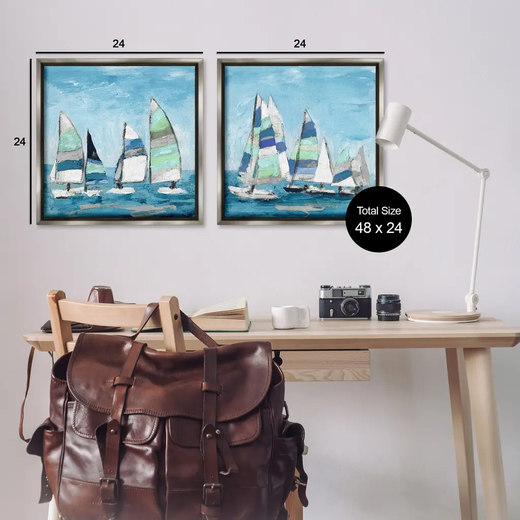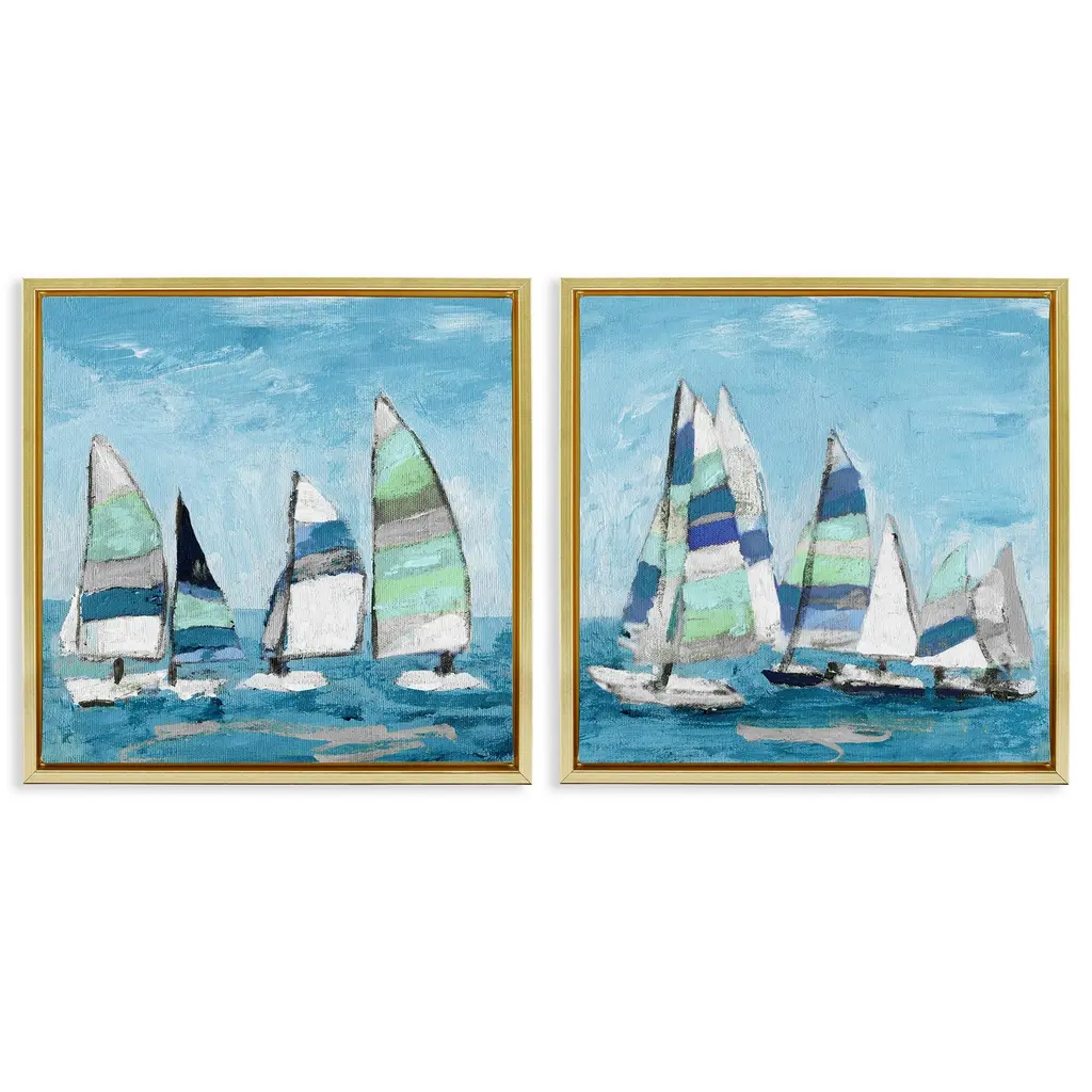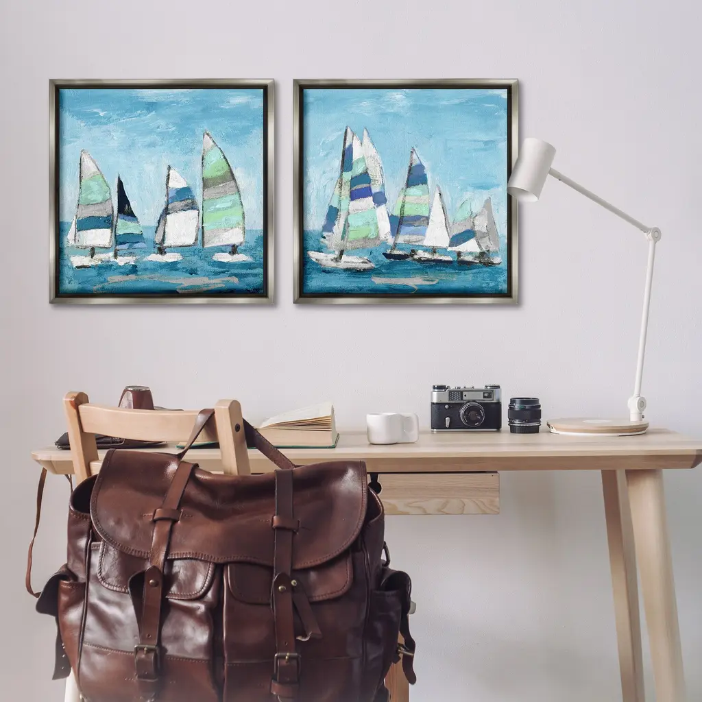 Elevate your home or office to the next level with Stupell Framed Floating Canvas Wall Art. Our premium hand-stretched canvas is mounted securely into a sturdy lightweight frame. The museum-style gap between the wrapped canvas and the box frame gives the illusion of floating artwork. Stupell Wall Art is made in the USA.Features: Dimensions: 2 Piece Set, Each Frame is 18 x 1.7 x 18Two Piece Floating Frame Canvas Products are available as 18"x18" or 25"x25" Panels. All Floating Frame Canvas Products have a 1.7" Depth.Wall Art is Ready to Hang with Hardware Free Hanging. No Installation required. For Easy Set Up Lean or Layer Artwork on Shelf or Against Wall. Artwork is Permently Fixed into the Frame.Our elevated 1.7" Thick Floating Frame is the perfect complement to our canvas style Wall Art. We use only the highest quality inks in house with industry leading printing solutions. Canvas is hand stretched over a durable wood foundation and then mounted securly into a Modern Box Frame. Made in the USA.Artwork Relates To: Boat, Transportation, Vehicle, Watercraft, Vessel, Sailboat, NauticalDesign by Katrina Craven