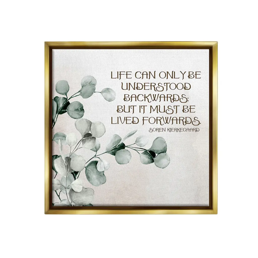 Add dimension to any room with our textured Framed Giclee Artwork. Our framed artwork is securely mounted into a 1.5-inch thick wood grain frame and ready to hang. Frames are available in three alluring styles: black, gray farmhouse and white. In addition, you should check out our oversized options if you want a statement piece. Stupell Wall Art is made in the USA.Features: Dimensions: 12 x 1.5 x 12 FramedFramed Giclee Product Sizes Include 12"x12", 17"x17", and 24"x24". Framed Giclee Products have a 1.5" Depth. Wall Art is Ready to Hang with Hardware Free Hanging. No installation required. For Easy Set Up Lean or Layer Artwork on Shelf or Against Wall.Our giclée prints are carefully mounted on a durable MDF backing, and then perfectly finished in a 1.5 inch thick woodgrain frame. Mounted frame colors include black, gray farmhouse and white. Made In USA.Artwork Relates To: Plant, Botanical, Herb, Floral, Eucalyptus, Quote, Inspirational, Motivational, Life Can Only Be Understood Backwards But it Must Be Lived Forwards, Soren KierkegaardDesign by Kim Allen