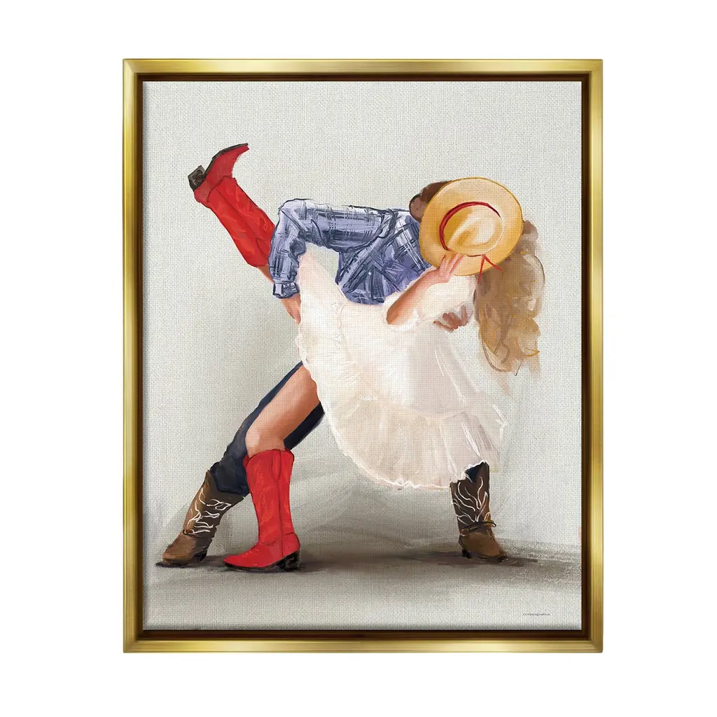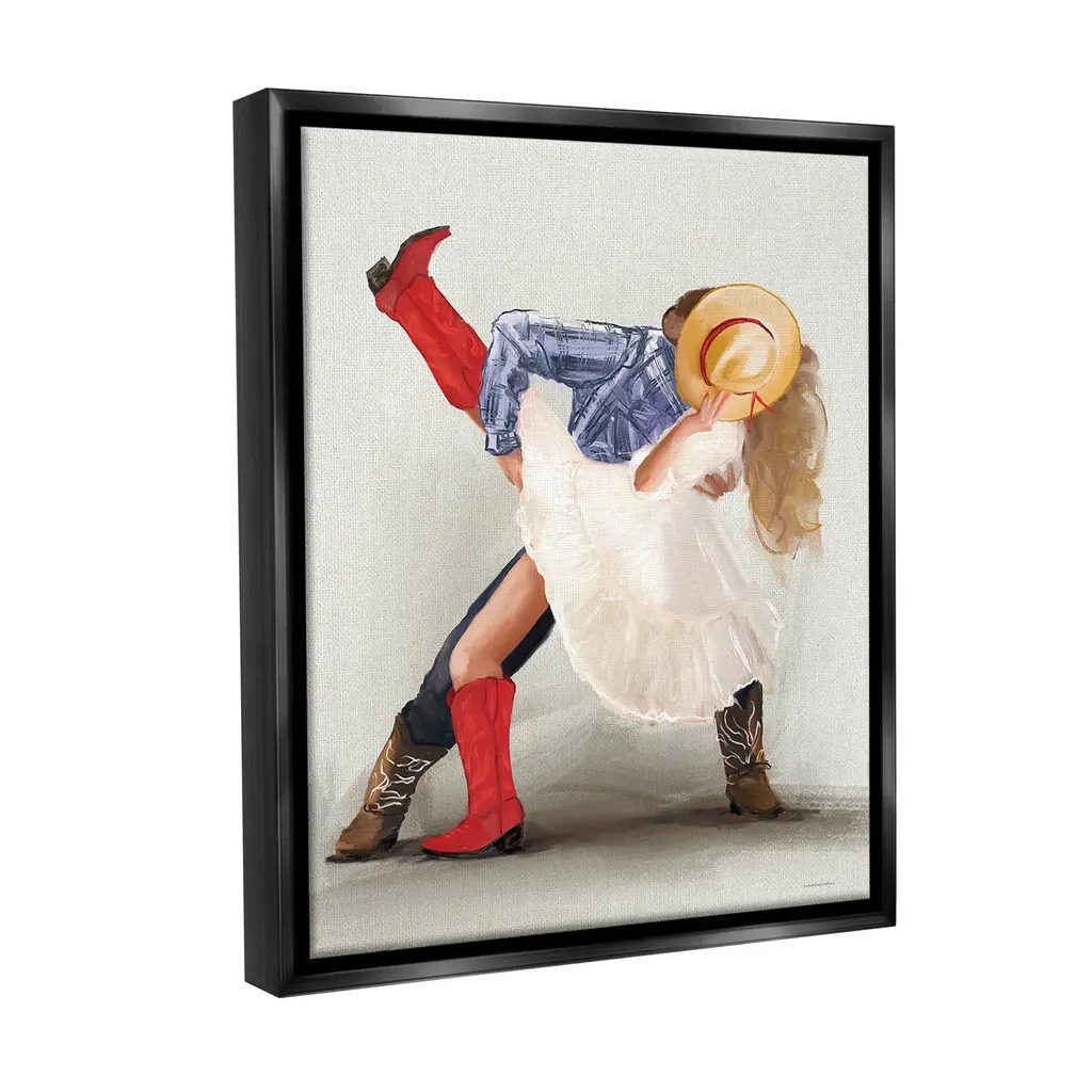 Elevate your home or office to the next level with Stupell Framed Floating Canvas Wall Art. Our premium hand-stretched canvas is mounted securely into a sturdy lightweight frame. The museum-style gap between the wrapped canvas and the box frame gives the illusion of floating artwork. Stupell Wall Art is made in the USA.Features: Dimensions: 17 x 1.7 x 21 Frame, 16 x 1.5 x 20 Canvas ArtFloating Frame Canvas Products are available in sizes 17"x21" and 25"x31". All Floating Frame Canvas Products have a 1.7" Depth.Wall Art is Ready to Hang with Hardware Free Hanging. No Installation required. For Easy Set Up Lean or Layer Artwork on Shelf or Against Wall. Artwork is Permently Fixed into the Frame.Our elevated 1.7" Thick Floating Frame is the perfect complement to our canvas style Wall Art. We use only the highest quality inks in house with industry leading printing solutions. Canvas is hand stretched over a durable wood foundation and then mounted securly into a Modern Box Frame. Made in the USA.Artwork Relates To: Equestrian, Rodeo, Country, Southwestern, Cowgirl, Cowboy, Dance, Romance, RomanticDesign by Kamdon Kreations