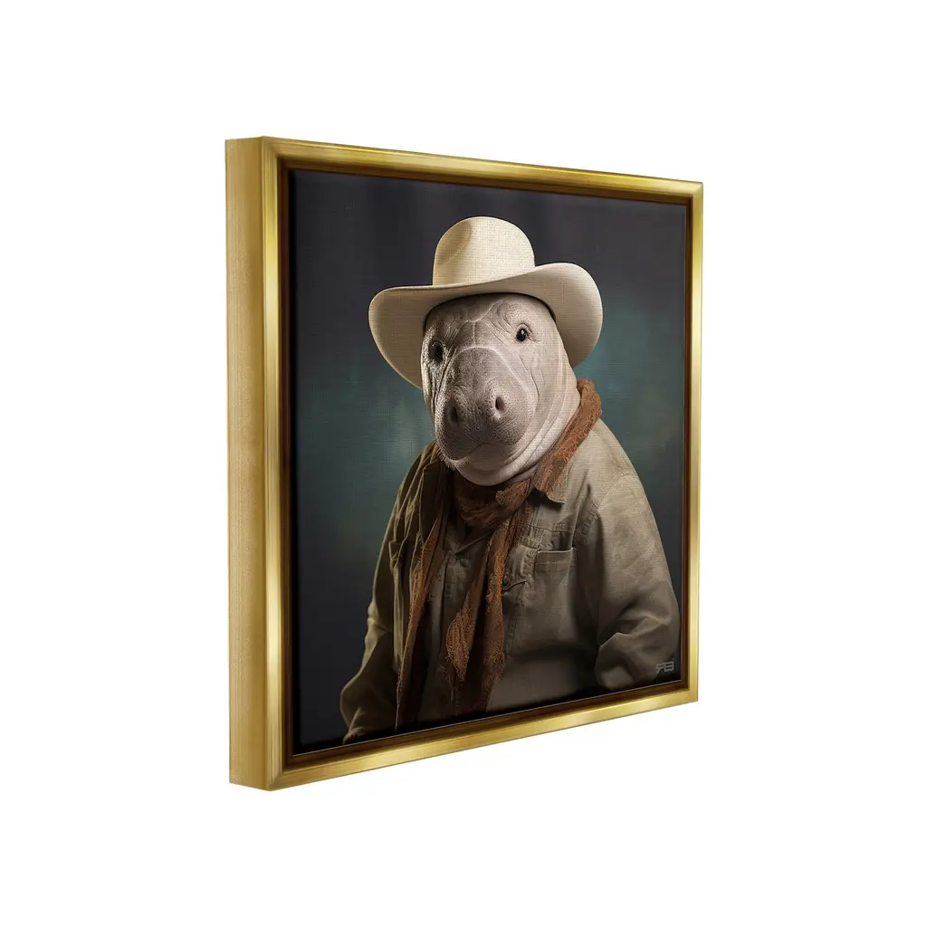 Elevate your home or office to the next level with Stupell Framed Floating Canvas Wall Art. Our premium hand-stretched canvas is mounted securely into a sturdy lightweight frame. The museum-style gap between the wrapped canvas and the box frame gives the illusion of floating artwork. Stupell Wall Art is made in the USA.Features: Dimensions: 18 x 1.7 x 18 Frame, 17 x 1.5 x 17 Canvas ArtFloating Frame Canvas Products are available in sizes 18"x18" and 25"x25". All Floating Frame Canvas Products have a 1.7" Depth.Wall Art is Ready to Hang with Hardware Free Hanging. No Installation required. For Easy Set Up Lean or Layer Artwork on Shelf or Against Wall. Artwork is Permently Fixed into the Frame.Our elevated 1.7" Thick Floating Frame is the perfect complement to our canvas style Wall Art. We use only the highest quality inks in house with industry leading printing solutions. Canvas is hand stretched over a durable wood foundation and then mounted securly into a Modern Box Frame. Made in the USA.Artwork Relates To: Animal, Mammal, Wildlife, Manatee, Sea Life, Cowboy Hat, Nautical, Marine, FashionDesign by RB