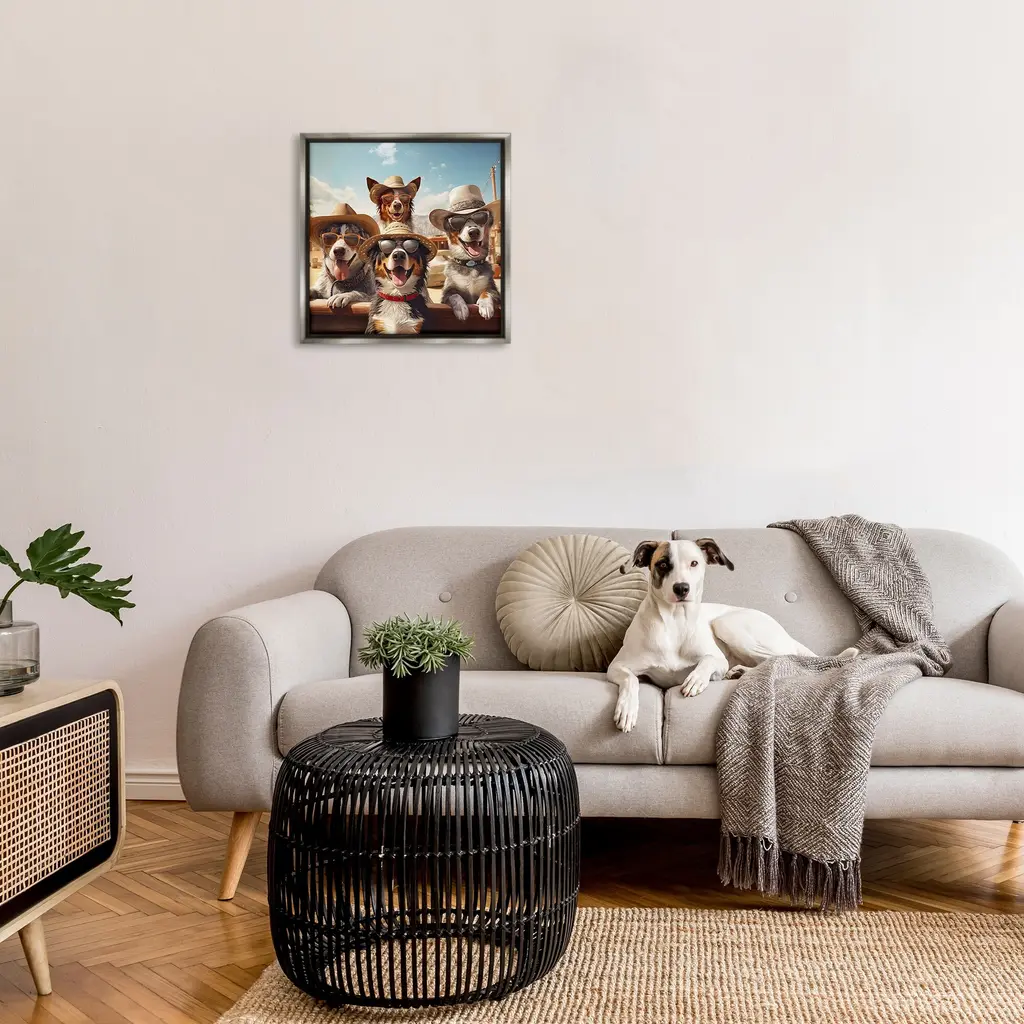Stupell Southwestern Cowboy Dogs Framed Floater Canvas Wall Art Design By Jim Baldwin - 25 X 25 - Grey