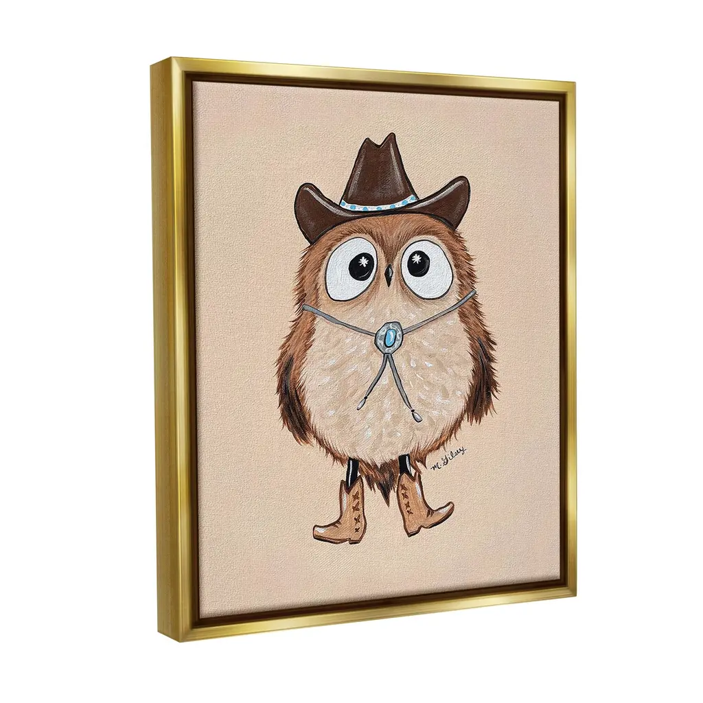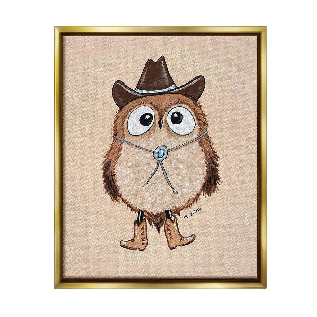 Stupell Southwestern Cowboy Owl Framed Floater Canvas Wall Art Design By Michelle Gilsey - 17 X 21 - Gold