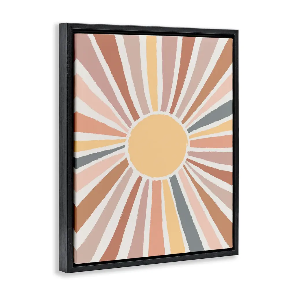 Elevate your home or office to the next level with Stupell Framed Floating Canvas Wall Art. Our premium hand-stretched canvas is mounted securely into a sturdy lightweight frame. The museum-style gap between the wrapped canvas and the box frame gives the illusion of floating artwork. Stupell Wall Art is made in the USA.Features: Dimensions: 17 x 1.7 x 21 Frame, 16 x 1.5 x 20 Canvas ArtFloating Frame Canvas Products are available in sizes 17"x21" and 25"x31". All Floating Frame Canvas Products have a 1.7" Depth.Wall Art is Ready to Hang with Hardware Free Hanging. No Installation required. For Easy Set Up Lean or Layer Artwork on Shelf or Against Wall. Artwork is Permently Fixed into the Frame.Our elevated 1.7" Thick Floating Frame is the perfect complement to our canvas style Wall Art. We use only the highest quality inks in house with industry leading printing solutions. Canvas is hand stretched over a durable wood foundation and then mounted securly into a Modern Box Frame. Made in the USA.Artwork Relates To: Abstract, Boho, Stripes, Pattern, Sun, NatureDesign by Lisa Whitebutton
