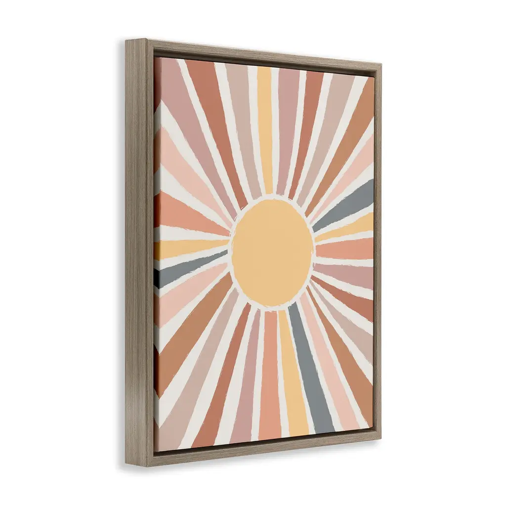 Elevate your home or office to the next level with Stupell Framed Floating Canvas Wall Art. Our premium hand-stretched canvas is mounted securely into a sturdy lightweight frame. The museum-style gap between the wrapped canvas and the box frame gives the illusion of floating artwork. Stupell Wall Art is made in the USA.Features: Dimensions: 17 x 1.7 x 21 Frame, 16 x 1.5 x 20 Canvas ArtFloating Frame Canvas Products are available in sizes 17"x21" and 25"x31". All Floating Frame Canvas Products have a 1.7" Depth.Wall Art is Ready to Hang with Hardware Free Hanging. No Installation required. For Easy Set Up Lean or Layer Artwork on Shelf or Against Wall. Artwork is Permently Fixed into the Frame.Our elevated 1.7" Thick Floating Frame is the perfect complement to our canvas style Wall Art. We use only the highest quality inks in house with industry leading printing solutions. Canvas is hand stretched over a durable wood foundation and then mounted securly into a Modern Box Frame. Made in the USA.Artwork Relates To: Abstract, Boho, Stripes, Pattern, Sun, NatureDesign by Lisa Whitebutton