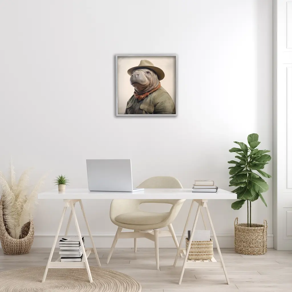 Add dimension to any room with our textured Framed Giclee Artwork. Our framed artwork is securely mounted into a 1.5-inch thick wood grain frame and ready to hang. Frames are available in three alluring styles: black, gray farmhouse and white. In addition, you should check out our oversized options if you want a statement piece. Stupell Wall Art is made in the USA.Features: Dimensions: 12 x 1.5 x 12 FramedFramed Giclee Product Sizes Include 12"x12", 17"x17", and 24"x24". Framed Giclee Products have a 1.5" Depth. Wall Art is Ready to Hang with Hardware Free Hanging. No installation required. For Easy Set Up Lean or Layer Artwork on Shelf or Against Wall.Our giclée prints are carefully mounted on a durable MDF backing, and then perfectly finished in a 1.5 inch thick woodgrain frame. Mounted frame colors include black, gray farmhouse and white. Made In USA.Artwork Relates To: Animal, Mammal, Wildlife, Manatee, Sea Life, Cowboy Hat, Nautical, Marine, FashionDesign by RB