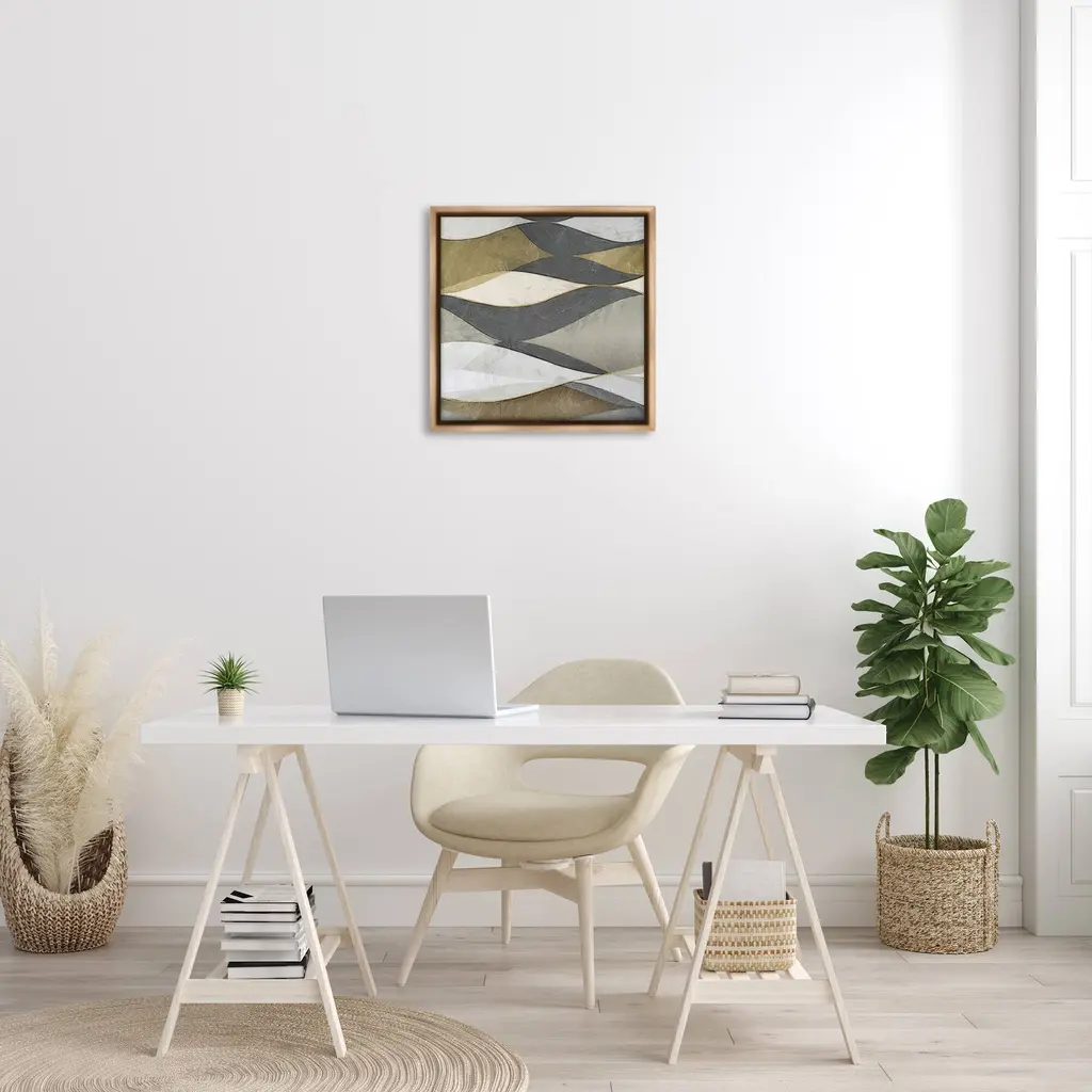 Elevate your home or office to the next level with Stupell Framed Floating Canvas Wall Art. Our premium hand-stretched canvas is mounted securely into a sturdy lightweight frame. The museum-style gap between the wrapped canvas and the box frame gives the illusion of floating artwork. Stupell Wall Art is made in the USA.Features: Dimensions: 18 x 1.7 x 18 Frame, 17 x 1.5 x 17 Canvas ArtFloating Frame Canvas Products are available in sizes 18"x18" and 25"x25". All Floating Frame Canvas Products have a 1.7" Depth.Wall Art is Ready to Hang with Hardware Free Hanging. No Installation required. For Easy Set Up Lean or Layer Artwork on Shelf or Against Wall. Artwork is Permently Fixed into the Frame.Our elevated 1.7" Thick Floating Frame is the perfect complement to our canvas style Wall Art. We use only the highest quality inks in house with industry leading printing solutions. Canvas is hand stretched over a durable wood foundation and then mounted securly into a Modern Box Frame. Made in the USA.Artwork Relates To: Abstract, Modern, Landscape, Southwestern, Desert, Neutral, Geometric, ShapesDesign by Alonzo Saunders