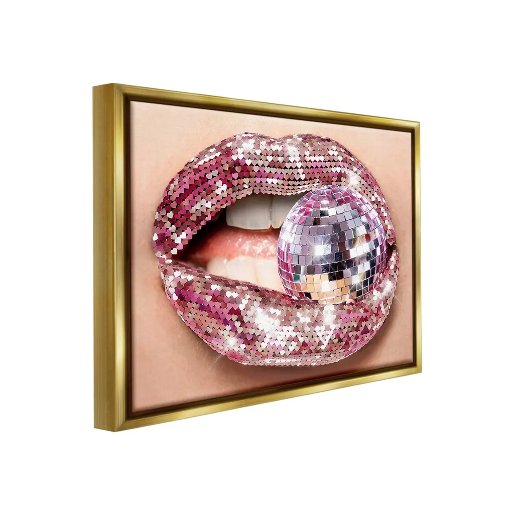 Stupell Sparkle Lips & Disco Ball Framed Floater Canvas Wall Art Design By Ziwei Li - 31 X 25 - Gold