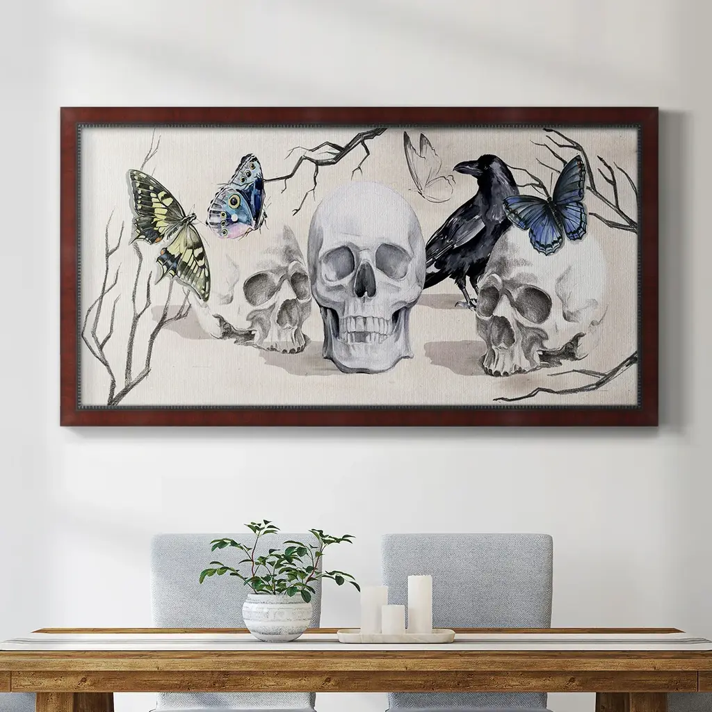 Proudly made in the USA, Our stretched canvas is created with the highest standards. We use only the highest quality inks and canvas on our in house Mimaki printers, and then hand cut and stretch each piece over a 1.5 inch thick wooden frame for hanging. The art comes ready to hang with no installation required. Not to mention, at this size, it is sure to be the focal point of any room!Features:Dimensions: 24 x 1.5 x 10 InchesStretched Canvas Sizes IncludeStandard: 24 x 1.5 x 10Large: 30 x 1.5 x 13X-Large: 40 x 1.5 x 17Oversized: 48 x 1.5 x 20Wall Art is Ready to Hang - No Installation or Hardware Needed. For Easy Set Up Lean or Layer Artwork on Shelf or Against Wall.Our stretched canvas is created with the highest standards. We use only the highest quality inks and canvas on our in house Mimaki printers, and then hand cut and stretch each piece over a 1.5 inch thick wooden frame for hanging. Made In USA.Artwork Relates To: Skull, Hear See Speak No Evil, Skeleton, HalloweenDesign by Lil' Rue