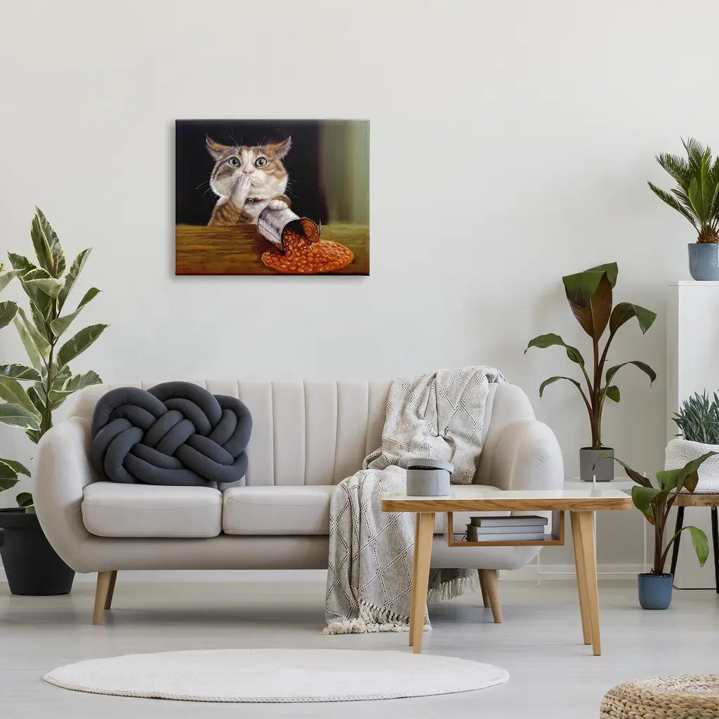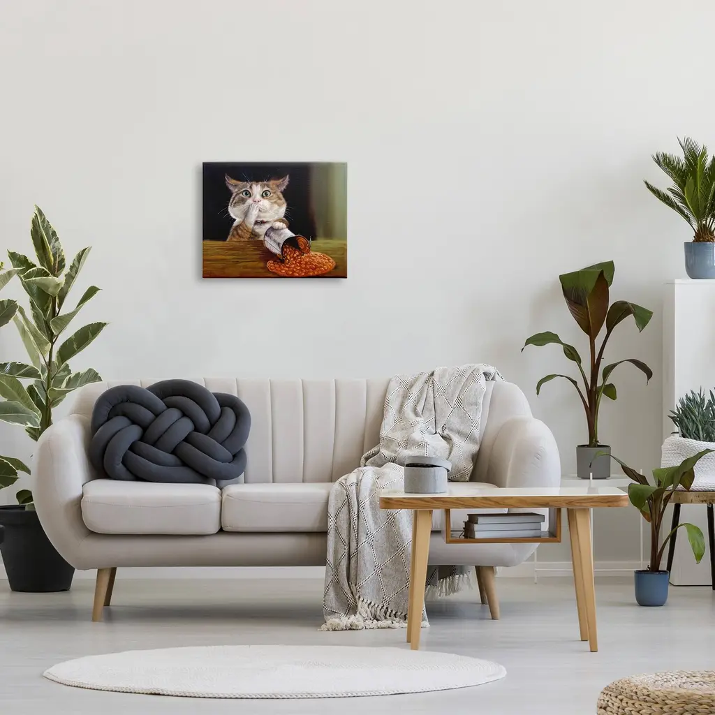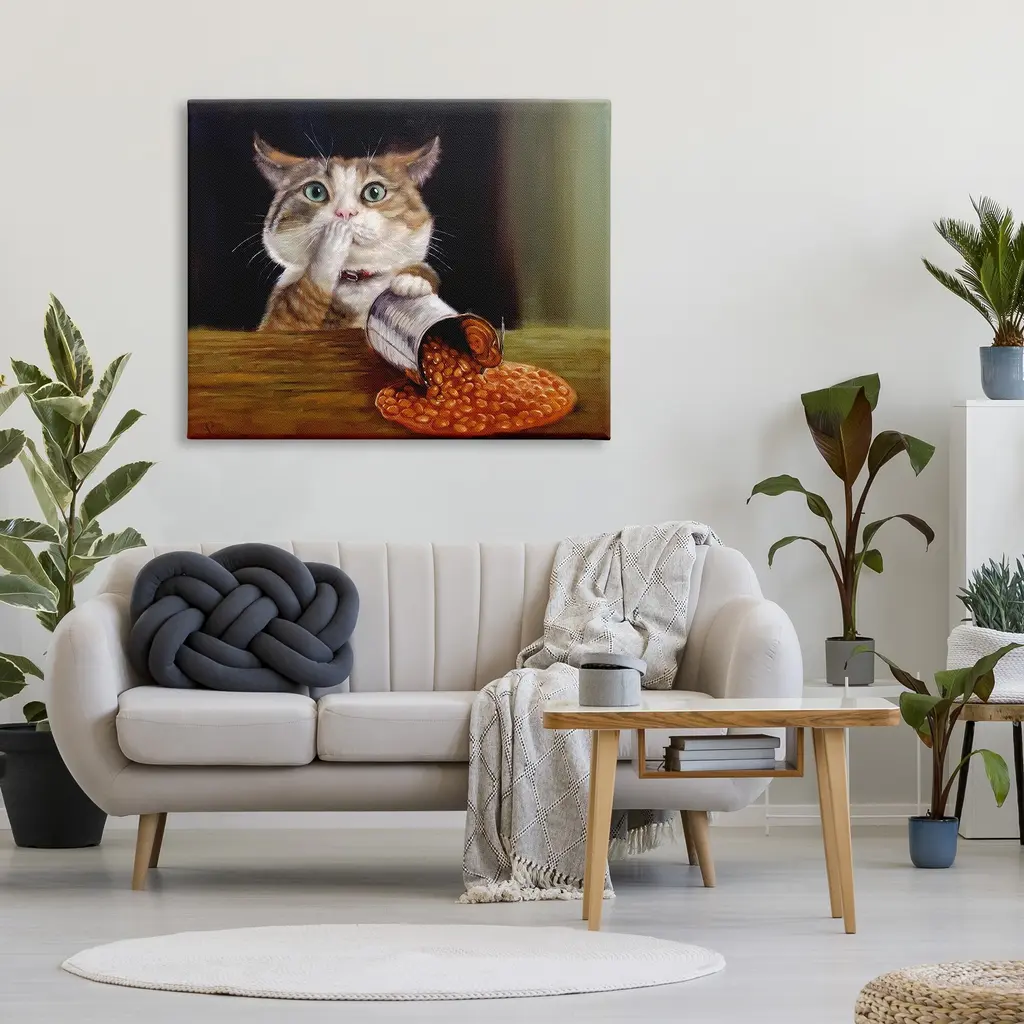 Proudly made in the USA, Our stretched canvas is created with the highest standards. We use only the highest quality inks and canvas on our in house Mimaki printers, and then hand cut and stretch each piece over a 1.5 inch thick wooden frame for hanging. The art comes ready to hang with no installation required. Not to mention, at this size, it is sure to be the focal point of any room!Features: Wall Art is Ready to Hang - No Installation or Hardware Needed. For Easy Set Up Lean or Layer Artwork on Shelf or Against Wall.Our stretched canvas is created with the highest standards. We use only the highest quality inks and canvas on our in house Mimaki printers, and then hand cut and stretch each piece over a 1.5 inch thick wooden frame for hanging. Made In USA.Artwork Relates To: Cat; Mammal; Pet; Animal; Food; Manx, Beans, CanDesign by Lucia Heffernan
