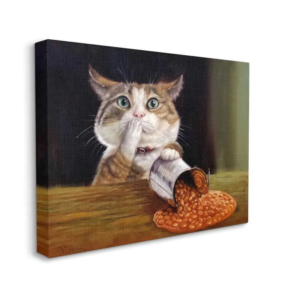 Stupell Spilled The Beans Humorous Cat Kitchen Animal Painting Canvas Wall Art, Design By Lucia Heffernan - 20 X 16