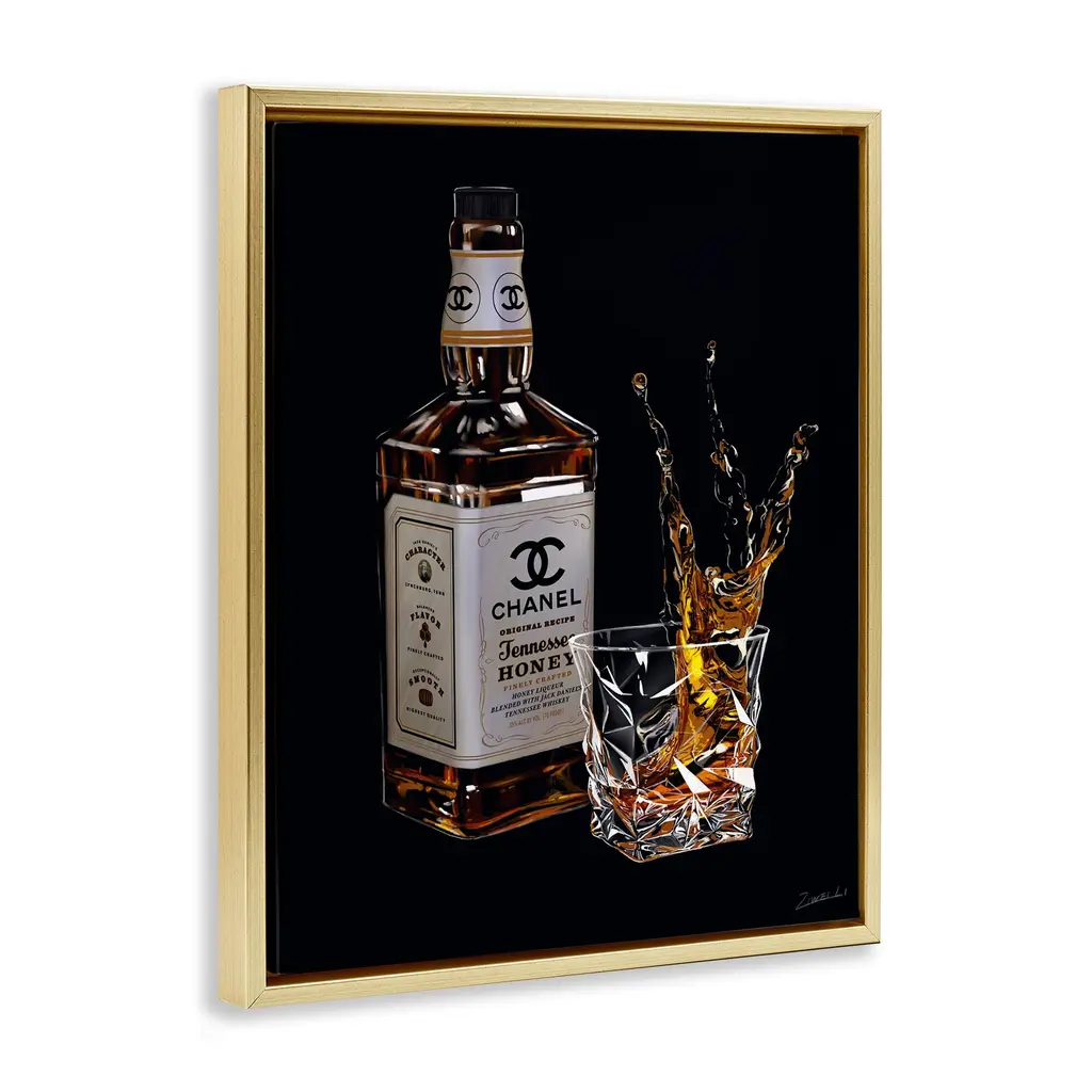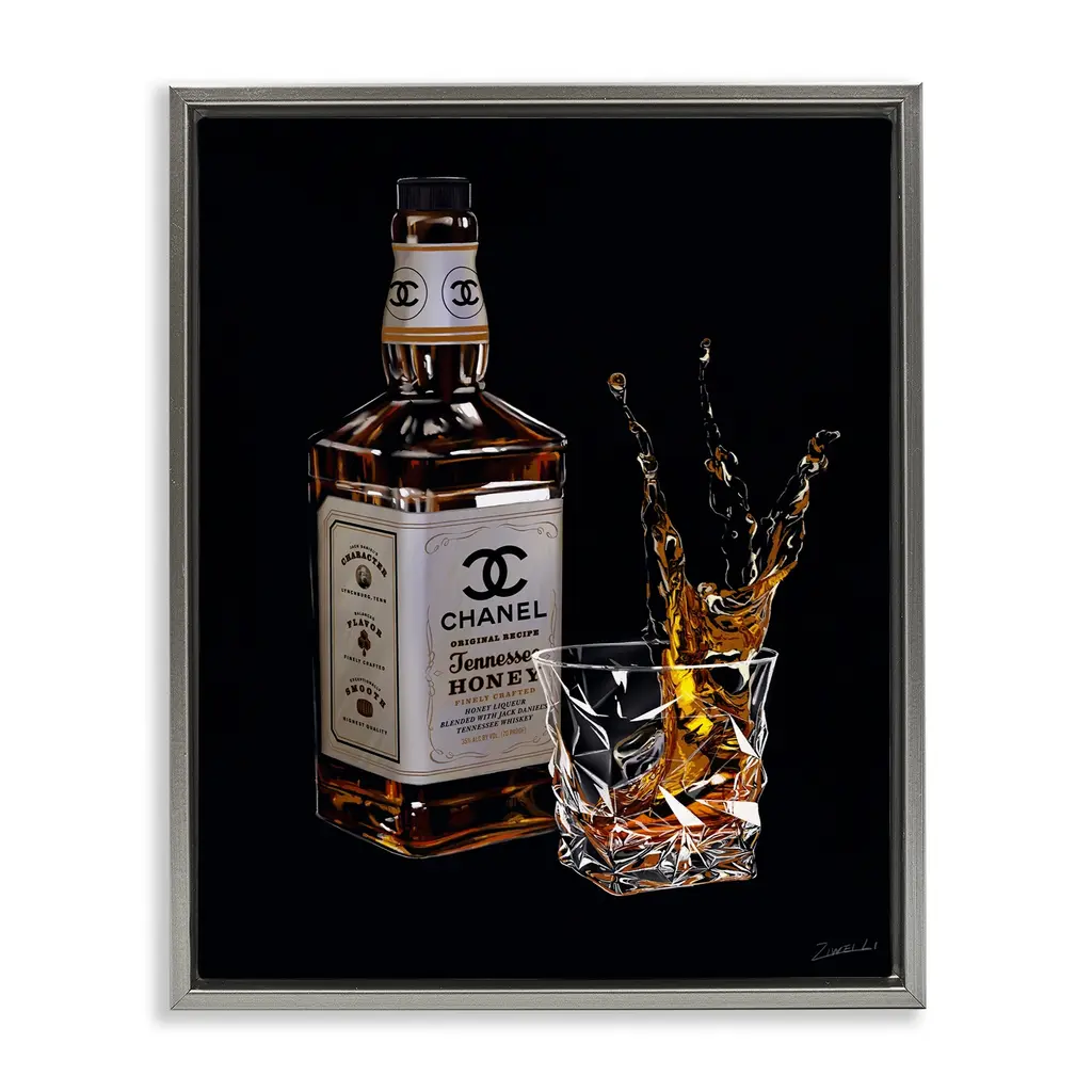 Elevate your home or office to the next level with Stupell Framed Floating Canvas Wall Art. Our premium hand stretched canvas is mounted securly into a sturdy lightweight frame. The museum style gap between wrapped canvas and box frame gives the illusion of floating artwork.Features:Floating Frame Sizes IncludeStandard: 21 x 1.7 x 17Oversized: 31 x 1.7 x 25Wall Art is Ready to Hang - No Installation or Hardware Needed. For Easy Set Up Lean or Layer Artwork on Shelf or Against Wall.Artwork Relates To: Liquor, Alcohol, Beverage, Drink, Whisky, CC CC CHARACTER VOTE BARING SYMCHRUNG TENN BALANCED FLAVOR CHANEL FINELY CRAFTED ORIGINAL RECIPE Tennesse SMOOTH HONEY HIGHEST QUALITY FINELY CRAFTED HONEY LIQUEUR BLENDED WITH JACK DANIEL'S TENNESSEE WHISKEY 38N ALC BY VOL (70 PROOF) ZIWELLIOur elevated 1.7" Thick Floating Frame is the perfect complement to our canvas style Wall Art. We use only the highest quality inks in house with industry leading printing solutions. Canvas is hand stretched over a durable wood foundation and then mounted securly into a Modern Box Frame. Made in the USA.Design by Ziwei Li