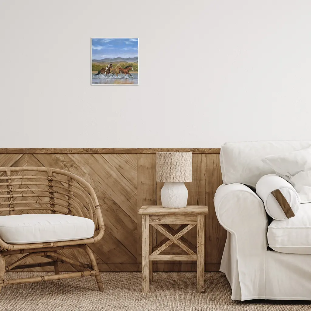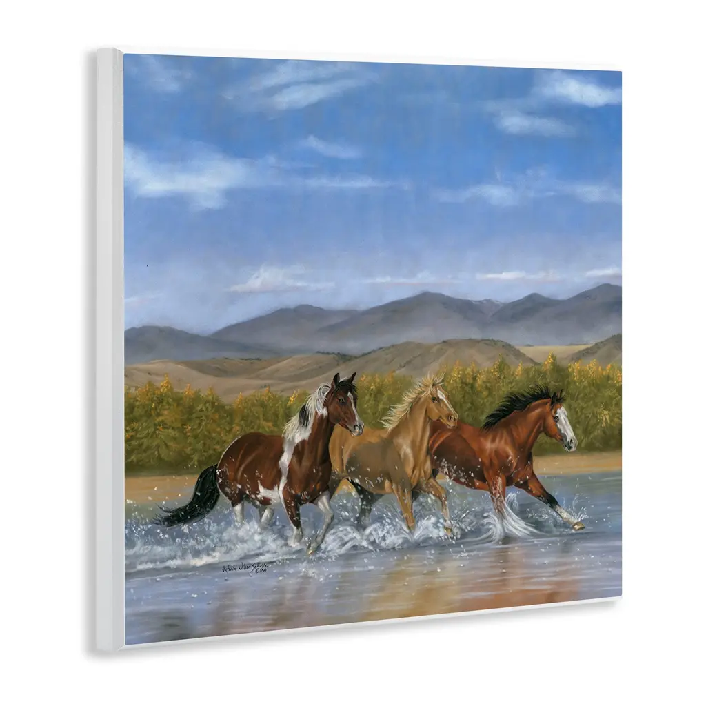 Our wall plaques start as high-quality lithograph prints mounted on durable 0.5-inch thick MDF wood. Each piece is hand finished and comes with a fresh layer of white foil on the sides to give it a crisp, clean look. Plaques arrive ready to hang without installation and come with removable plastic corners to keep them from damage in transit. Stupell Wall Art is made in the USA.Features: Dimensions: 12 x 0.5 x 12 InchesWall Art is Ready to Hang with Hardware Free Hanging. No installation required. For Easy Set Up Lean or Layer Artwork on Shelf or Against Wall.All of our wall plaques start off as high quality lithograph prints that are then mounted on durable 0.5 inch thick MDF wood. Each piece is hand finished and comes with a fresh layer of foil on the sides to give it a crisp clean look. Made In USA.Artwork Relates To: Animal, Herd, Horse, Mammal, Colt Horse, Stallion, Painting, LandscapeDesign by Victoria Schultz