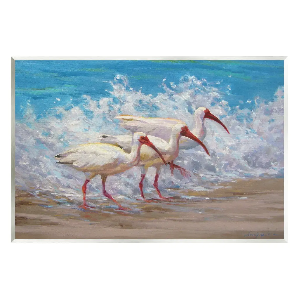Elevate your home or office to the next level with Stupell Framed Floating Canvas Wall Art. Our premium hand-stretched canvas is mounted securely into a sturdy lightweight frame. The museum-style gap between the wrapped canvas and the box frame gives the illusion of floating artwork. Stupell Wall Art is made in the USA.Features: Dimensions: 21 x 1.7 x 17 Frame, 20 x 1.5 x 16 Canvas ArtFloating Frame Canvas Products are available in sizes 21"x17" and 31"x25". All Floating Frame Canvas Products have a 1.7" Depth.Wall Art is Ready to Hang with Hardware Free Hanging. No Installation required. For Easy Set Up Lean or Layer Artwork on Shelf or Against Wall. Artwork is Permently Fixed into the Frame.Our elevated 1.7" Thick Floating Frame is the perfect complement to our canvas style Wall Art. We use only the highest quality inks in house with industry leading printing solutions. Canvas is hand stretched over a durable wood foundation and then mounted securly into a Modern Box Frame. Made in the USA.Artwork Relates To: Animal, Beak, Bird, Waterfowl, Painting, Crane Bird, Sea, Water, Shoreline, BeachDesign by Sandy Nelson