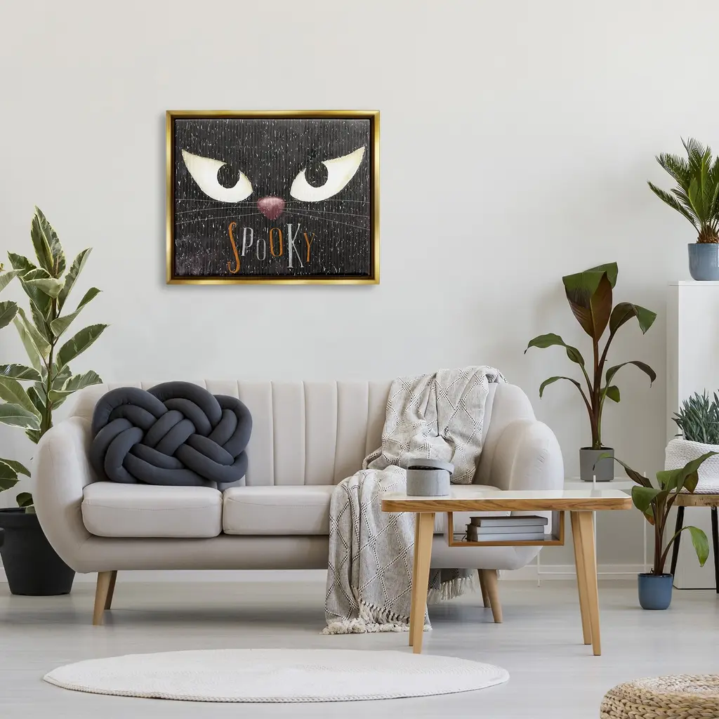 Stupell Spooky Halloween Black Cat Eyes Canvas Wall Art By Nd Art - 40 X 30