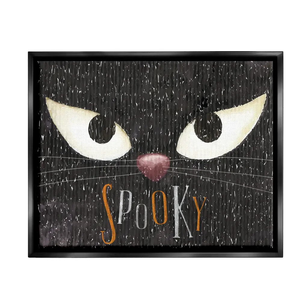 Stupell Spooky Halloween Black Cat Eyes Framed Floater Canvas Wall Art By Nd Art - 20 X 16 - Black