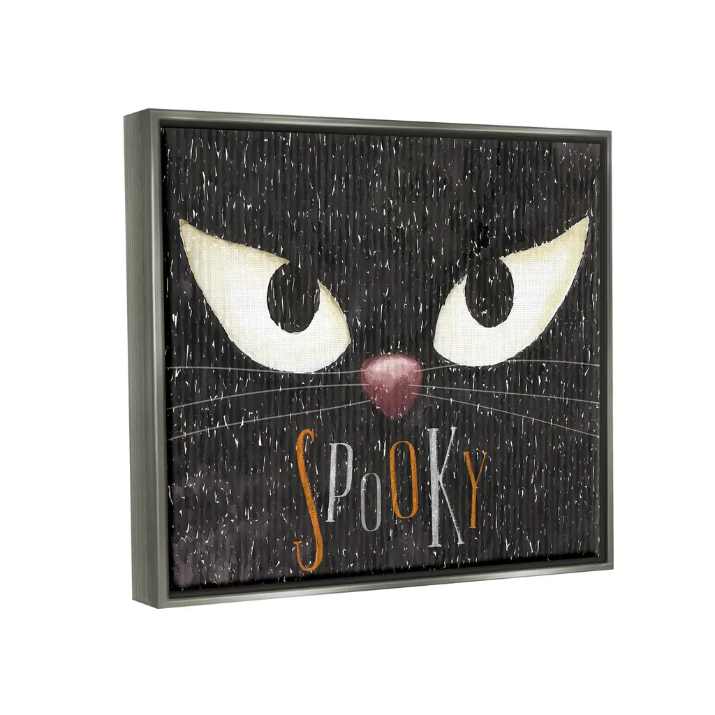 Elevate your home or office to the next level with Stupell Framed Floating Canvas Wall Art. Our premium hand-stretched canvas is mounted securely into a sturdy lightweight frame. The museum-style gap between the wrapped canvas and the box frame gives the illusion of floating artwork. Stupell Wall Art is made in the USA.Features: Dimensions: 21 x 1.7 x 17 Frame, 20 x 1.5 x 16 Canvas ArtFloating Frame Sizes Include Standard: 21 x 1.7 x 17 Oversized: 31 x 1.7 x 25Wall Art is Ready to Hang - No Installation or Hardware Needed. For Easy Set Up Lean or Layer Artwork on Shelf or Against Wall.Our elevated 1.7" Thick Floating Frame is the perfect complement to our canvas style Wall Art. We use only the highest quality inks in house with industry leading printing solutions. Canvas is hand stretched over a durable wood foundation and then mounted securly into a Modern Box Frame. Made in the USA.Artwork Relates To: Cat, Black Cat, Halloween, Seasonal, SpookyDesign by ND Art