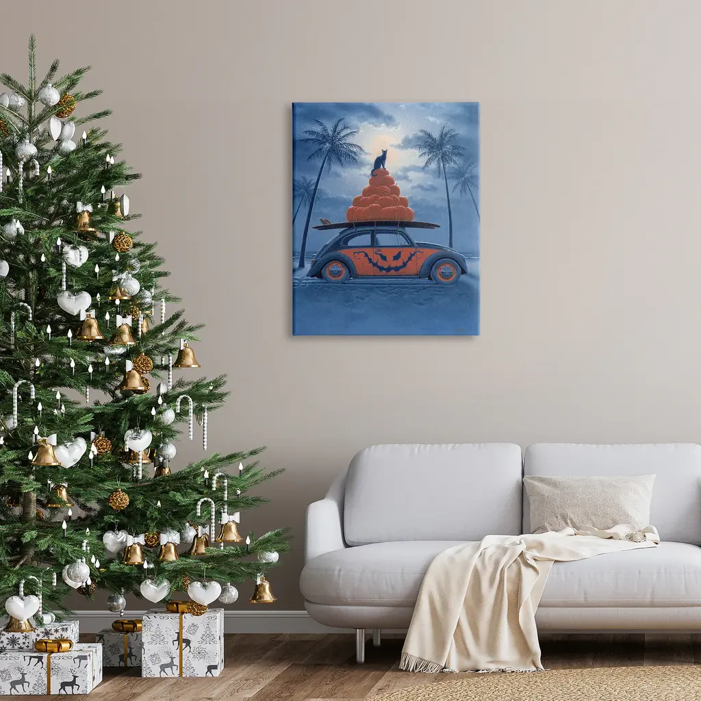 We create our stretched canvas to the highest standards. Using only the highest quality inks and canvas on Mimaki printers, we hand-cut and stretch each piece over a 1.5-inch thick wooden frame for hanging. As a result, the art comes ready to hang on the sturdy ledge with no installation required. Stupell Wall Art is made in the USA.Features: Dimensions: 16 x 1.5 x 20 InchesStretched Canvas Sizes Include Standard: 16 x 1.5 x 20 Large: 20 x 1.5 x 30 X-Large: 30 x 1.5 x 40 Oversized: 36 x 1.5 x 48Wall Art is Ready to Hang - No Installation or Hardware Needed. For Easy Set Up Lean or Layer Artwork on Shelf or Against Wall.Our stretched canvas is created with the highest standards. We use only the highest quality inks and canvas on our in house Mimaki printers, and then hand cut and stretch each piece over a 1.5 inch thick wooden frame for hanging. Made In USA.Artwork Relates To: Car, Nature, Animal, Mammal, Halloween, Tropical, Beach, Surfboard, PumpkinsDesign by Richard Courtney